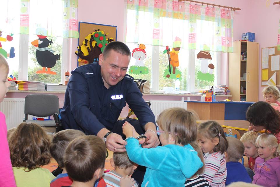 1 października 2014 r gościliśmy policję z Nowego Dworu Mazowieckiego. Panowie policjanci pokazali dzieciom Zespołu Szkolno-Przedszkolnego bezpieczną drogę do szkoły. Dzieci uczyły się jak bezpiecznie przechodzić przez jezdnię. Dzieciom z przedszkola przypadły do gustu kajdanki.