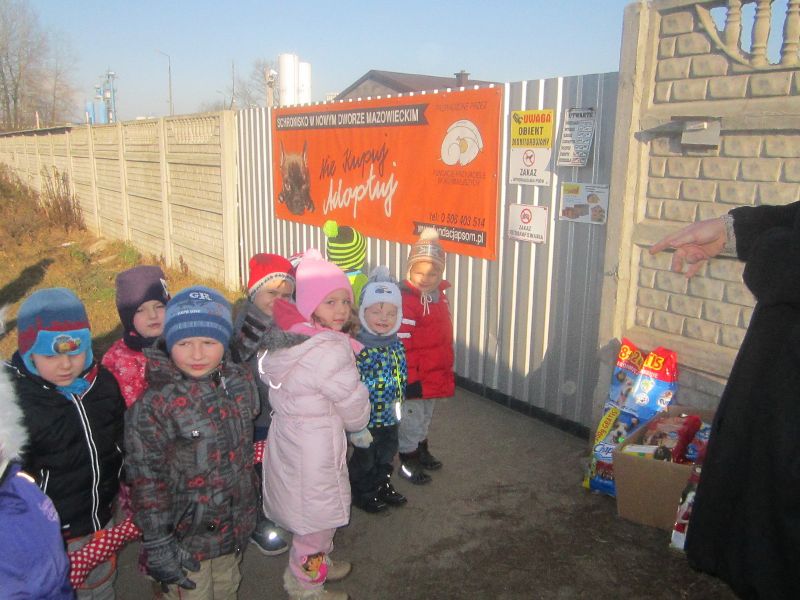 Grupa przedszkolaków wraz z wychowawczyniami p. Anetą Sopińską oraz Małgorzatą Stępniewską udała się do schroniska dla zwierząt w Nowym Dworze Mazowieckim, aby przekazać zebraną karmę. W zbiórkę karmy, która trwała od połowy listopada zaangażowali się nauczyciele oraz dzieci wraz z rodzicami. Dziękujemy wójtowi Gminy Czosnów p. Antoniemu Kręźlewiczowi za nieodpłatne użyczenie autokaru gminnego.