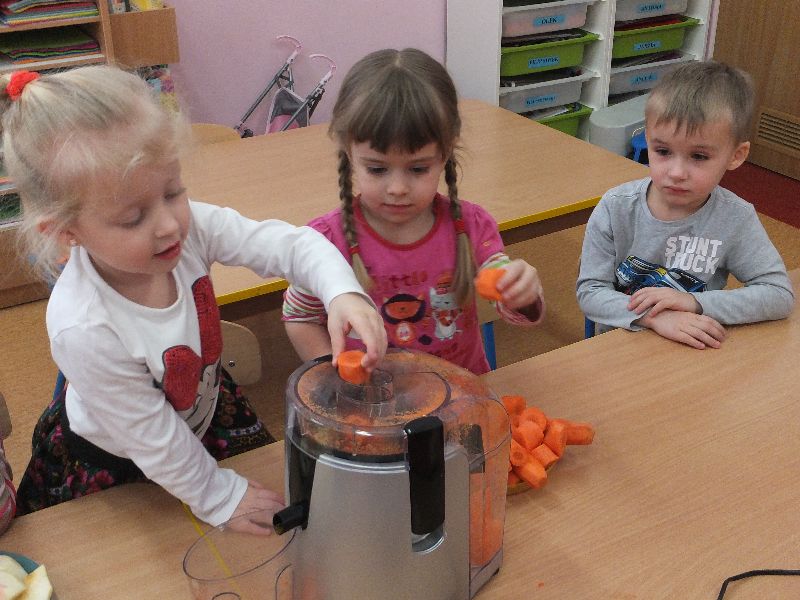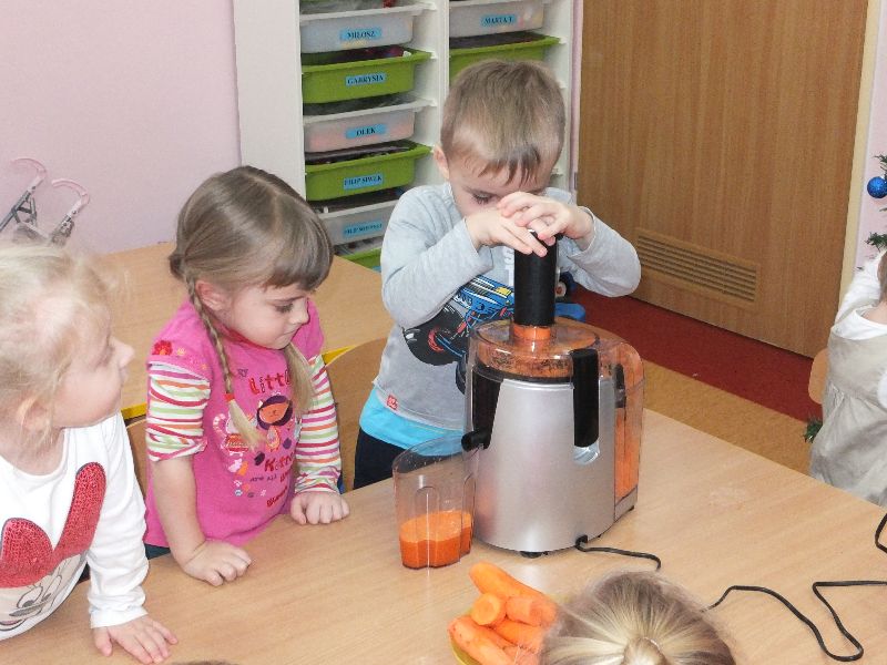 Wszyscy dobrze wiedzą jakie bogate w witaminy są soki owocowe czy warzywne. Warto pomóc dziecku polubić je. Soki to nie tylko doskonałe źródło witamin i cennych składników, ale pyszniejsze są niż słodycze. Przekonaliśmy się o tym dzisiaj, podczas robienia i picia soków przez dzieci w naszym przedszkolu.
