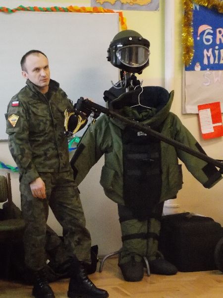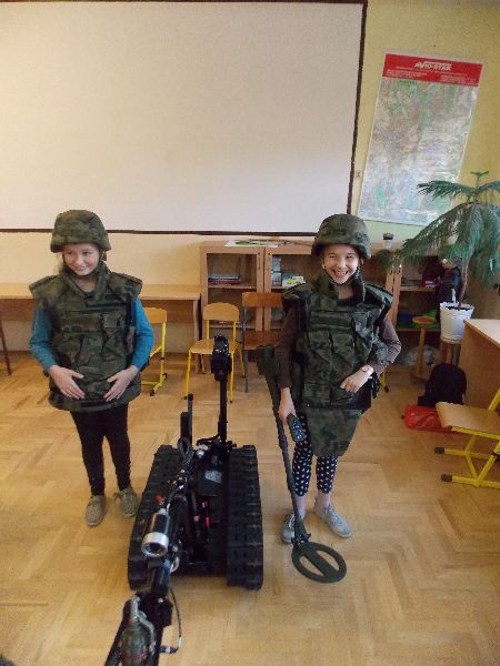 Dzieciom bardzo się podobało , czego dowodem są uśmiechy być może przyszłych "saperek" i "saperów". Pan Kubiak wraz z patrolem saperskim zainteresował uczniów zawodem żołnierza i przekazał , że saper to człowiek odważny i mądry. Tata Dawida, ucznia kl. V powiedział też, że w życiu ważne są marzenia, ale aby je spełnić trzeba dużo chęci i wysiłku, a to w dużej mierze zależy od nas samych.