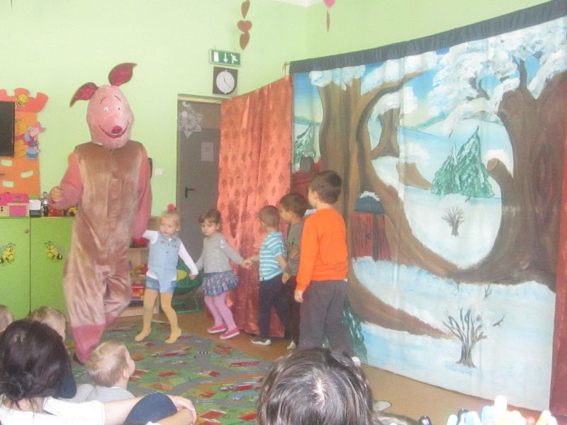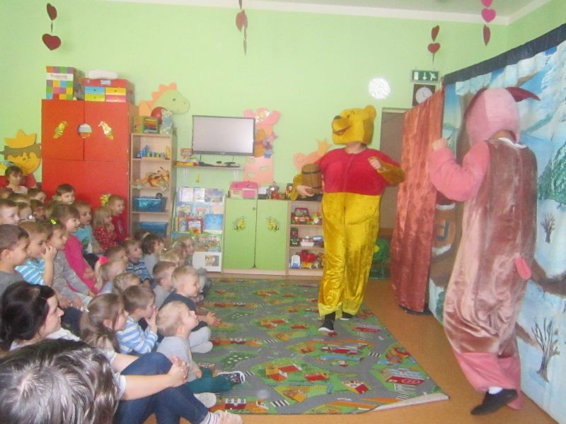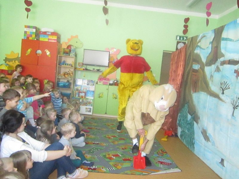 Koleje spotkanie z Kubusiem Puchatkiem za nami!!! 6 lutego grupa aktorów z teatru ART-RE Kraków przybyła do Zespołu Szkolno-Przedszkolnego w Kazuniu Nowym z przedstawieniem pt "Zima u Kubusia Puszatka" Spektakl porusza tematykę zmian zachodzących w przyrodzie zimą. Przyjaciele ze stumilowego lasu przygotowują się do powitania Pani Zimy włączając w ciekawe i śmieszne zabawy nasze dzielne przedszkolaki.