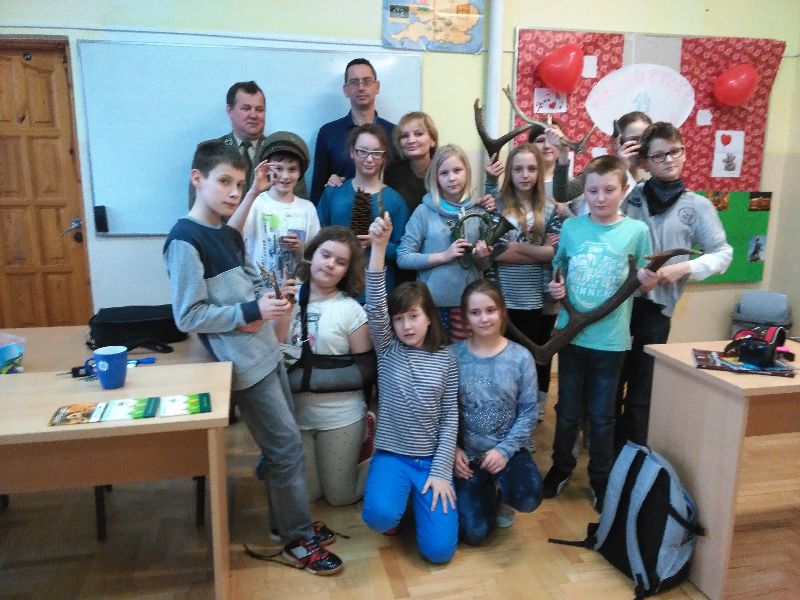 W poniedziałek 2 marca br. do Zespołu Szkolno-Przedszkolnego w Kazuniu Nowym przybyli Katarzyna Fidler – adiunkt ds. edukacji oraz leśniczy Adam Garbuliński - przedstawiciele Kampinoskiego Parku Narodowego. Na zajęciach w ramach projektu MOJA PRZYSZŁOŚĆ - współfinansowanego ze środków Europejskiego Funduszu Społecznego, uczniowie zapoznali się z gatunkami gadów, płazów i ssaków będących pod ochroną. Podczas prezentacji multimedialnej, można było zaobserwować, jak dużo roślin oraz grzybów znajduje się na terenie KPN. Uczniowie chętnie zadawali pytania gościom i mięli możliwość dotknąć prawdziwe poroże łosia oraz jelenia.