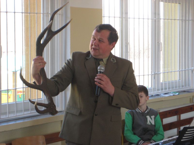 20 marca br. w Zespole Szkolno-Przedszkolnym w Kazuniu Nowym świętowaliśmy dzień wiosny. Nasz Zespół wziął u dział w konkursie DRZEWA NASZYCH LASÓW. 2 prace zostały wysłane na konkurs finałowy. Dzieci z przedszkola i szkoły podstawowej pod okiem p. Justyny Wojtczuk oraz p. Agnieszki Styś-Muchy,przy akompaniamencie p. Katarzyny Koseskiej, przygotowały uroczysty apel na temat pozytywnego oddziaływania przyrody na człowieka. Honorowym gościem był leśniczy Adam Garbuliński z Kampinoskiego Parku Narodowego, który opowiadał o walorach KPN. Dzieci zadawały mnóstwo pytań i miały okazję zobaczyć prawdziwe poroże łosia i jelenia