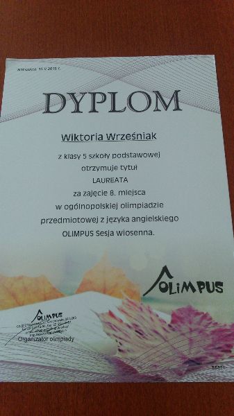 W tej sesji miło nam poinformować, iż laureatką została Wiktoria Wrześniak z klasy V zdobywając 8 miejsce z języka angielskiego.