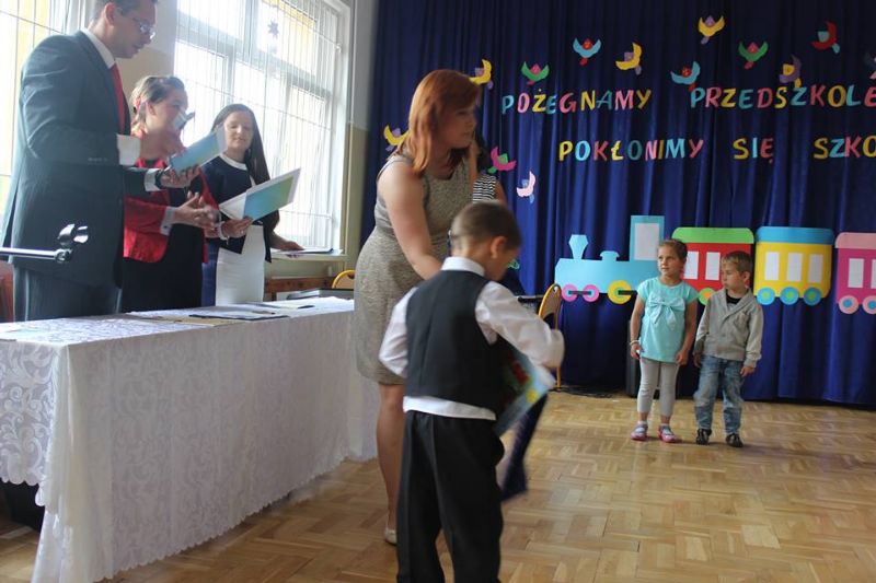 24 czerwca 2015 r. odbyło się uroczyste zakończenie roku przedszkolnego 2014/2015. Uroczystość rozpoczęto polonezem, wykonanym przez najstarsze przedszkolaki, które od września będą uczęszczać do klasy "0". Poloneza poprowadził dyrektor Krystian Buszta wraz z wychowawczyniami. Następnie grupy : "Żabki" i "Pszczółki" zaprezentowały swoje wierszyki oraz piosenki. Po występach wokalno - recytatorskich przyszedł czas na "Biedronki" i pozostałe grupy, które zaśpiewały swoje piosenki w języku angielskim. Na koniec dyrektor ZS-P wręczył wszystkim dzieciom dyplomy pożegnalne, a najstarszym - dyplomy ukończenia przedszkola oraz prezenty od "Biedronek". Serdeczne podziękowania dla Pani Katarzyny Koseskiej za akompaniament muzyczny oraz naukę tańca "Polonez". Kolejny rok pracy za nami- do zobaczenia we wrześniu! Życzymy udanych i spokojnych wakacji. Dziękujemy wszystkim rodzicom za współpracę.