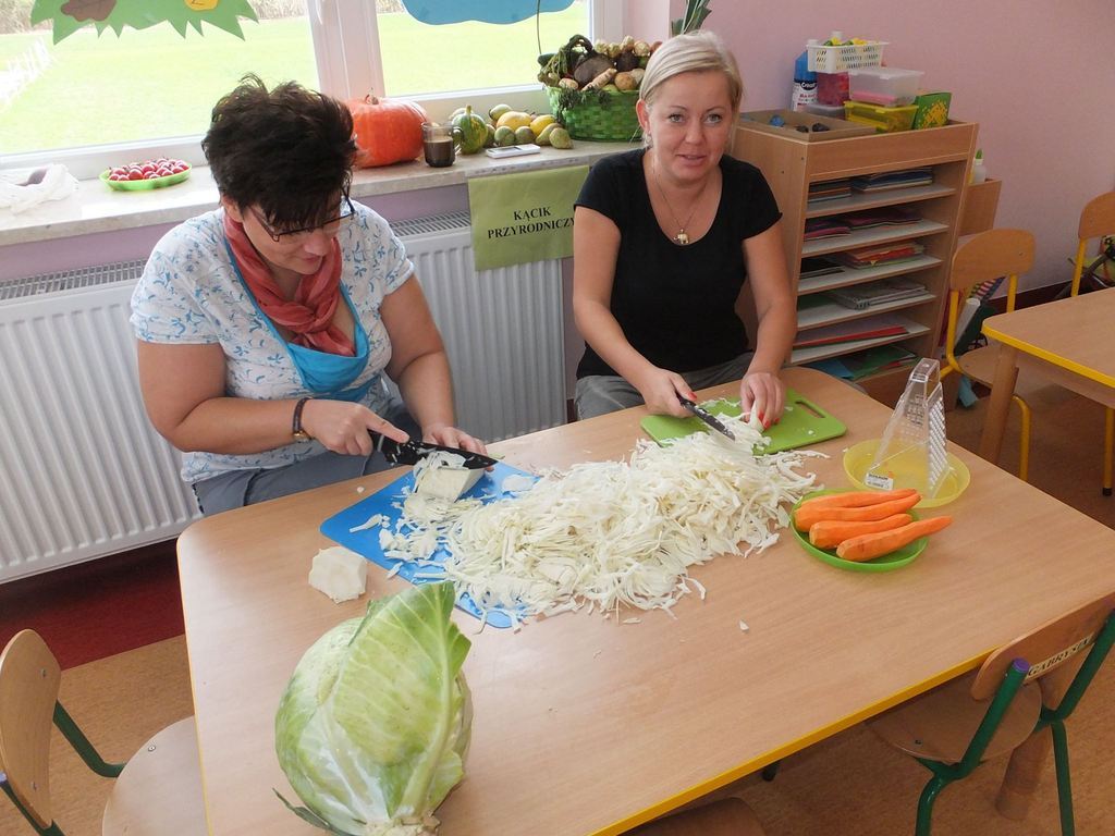 Jesień to pora roku, w której ludzie i zwierzęta zaczynają gromadzić zapasy na zimę. Grupa ,,Pszczółek” rozmawiając o warzywach postanowiła na mroźne zimowe dni ukisić kapustę, która doda nam dużo siły i zdrowia.