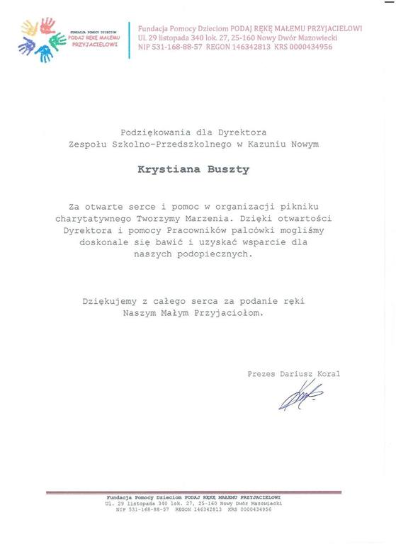 • Podziękowania dla Dyrektora