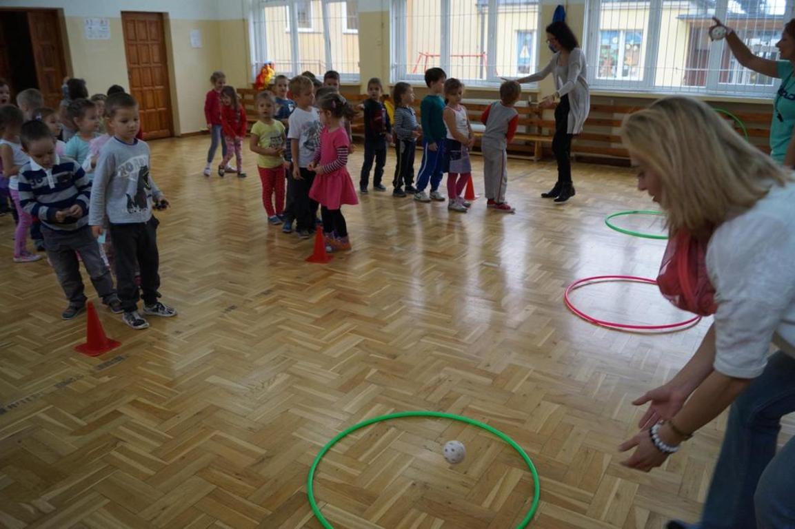 Ostatni dzień tygodnia w Zespole Szkolno - Przedszkolnym upłynął pod znakiem zabawy i nawiązywania relacji międzyszkolnych. W ramach nawiązywania nowych znajomości i rozwijania umiejętności sportowo - rekreacyjnych najmłodsze dzieci przyjęły 13 listopada długo wyczekiwanych gości z Zespołu Szkół Publicznych w Kazuniu Polskim. Radości