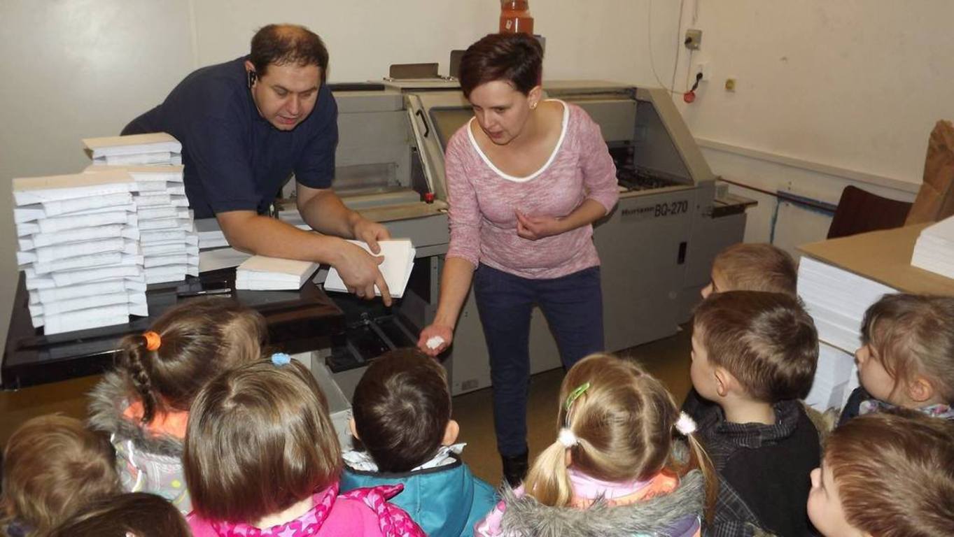 7.12.2015 dzieci z grup ,,Żabki" i ,,Biedronki" odbyły wycieczkę do drukarni Garmund. Po przyjeździe na miejsce dzieci zostały bardzo ciepło przyjęte przez właściciela i pracowników. Dzieci miały okazję zobaczyć całą linie technologiczną drukowania książki. Maluchy widziały jak się drukuje , składa, klei, przycina i tworzy okładkę książki. Dzieci otrzymały również prezenty na pamiątkę wizyty w drukarni.