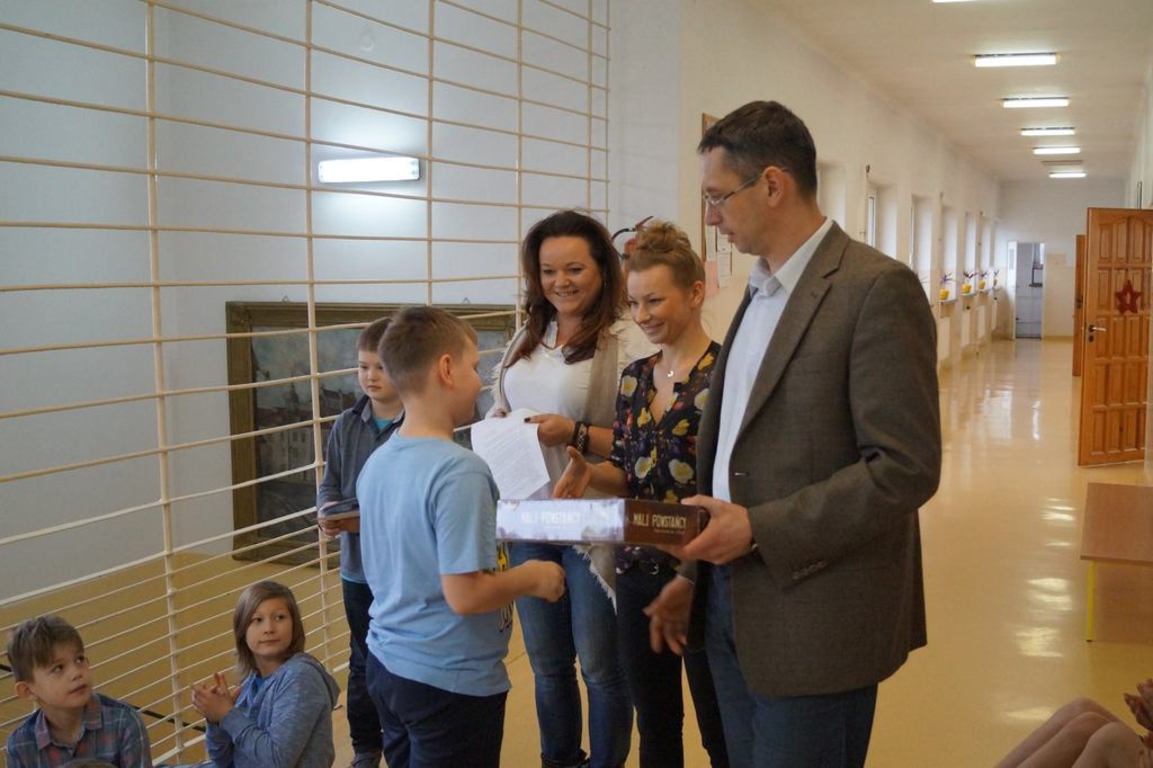 Toteż z nieukrywaną przyjemnością w dniu dzisiejszym dokonaliśmy wręczenia nagród dwóm uczniom naszej szkoły, którzy zajęli pierwsze miejsca w konkursie organizowanym przez GKRPA w Czosnowie. Tematem konkursu w przypadku klas I-III było hasło promujące zdrowy styl życia, natomiast klasy IV-VI miały za zadanie ułożenie krótkiego wierszyka o tej samej tematyce. Decyzją komisji konkursowej pierwsze miejsce w klasach I-III przyznano uczniowi klasy III – Jakubowi Zwolińskiemu, natomiast w kategorii wiekowej dla klas IV-VI zwycięskie, pierwsze miejsce wywalczył uczeń klasy IV – Bartłomiej Bark.