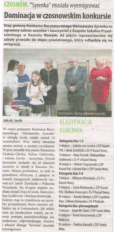Goniec Lokalny - Dominacja w czosnowskim konkursie