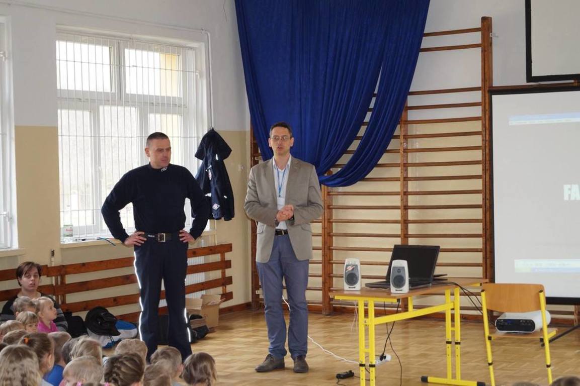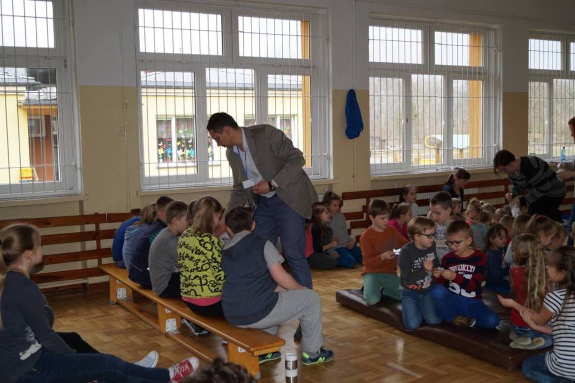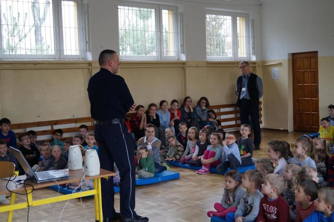 22 marca br. dzieci z przedszkola i klas 0 - VI wzięły udział w szkoleniu poprowadzonym przez p. Szymona Koźniewskiego - policjanta z Komendy Powiatowej w Nowym Dworze Mazowieckim. Celem spotkania było przypomnienie zasad bezpieczeństwa podczas drogi z domu do szkoły, właściwego zachowania się w przypadku stania się ofiarą ataku ze strony psa jak i wyboru bezpicznych miejsc na zabawę po skończonych lekcjach w szkole. Serdecznie dziękujemy Fundacji "KUBUŚ" za nieodpłatne przekazanie gadgetów odblaskowych dla wszystkich dzieci i pracowników szkoły.