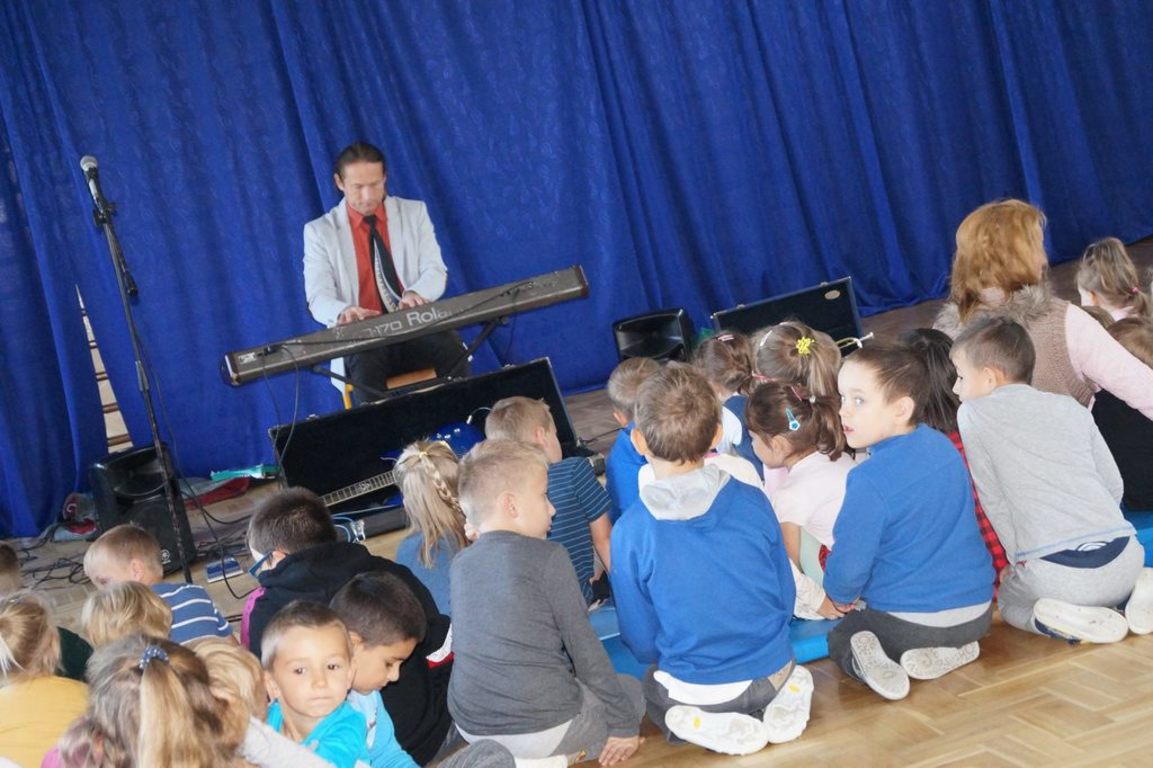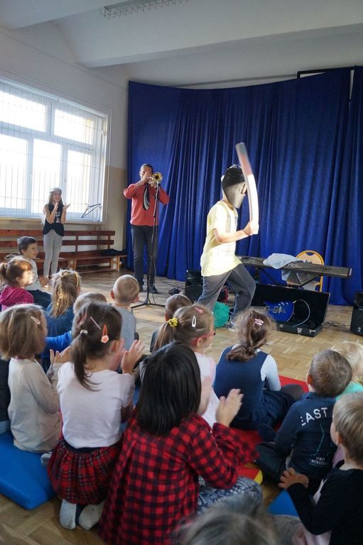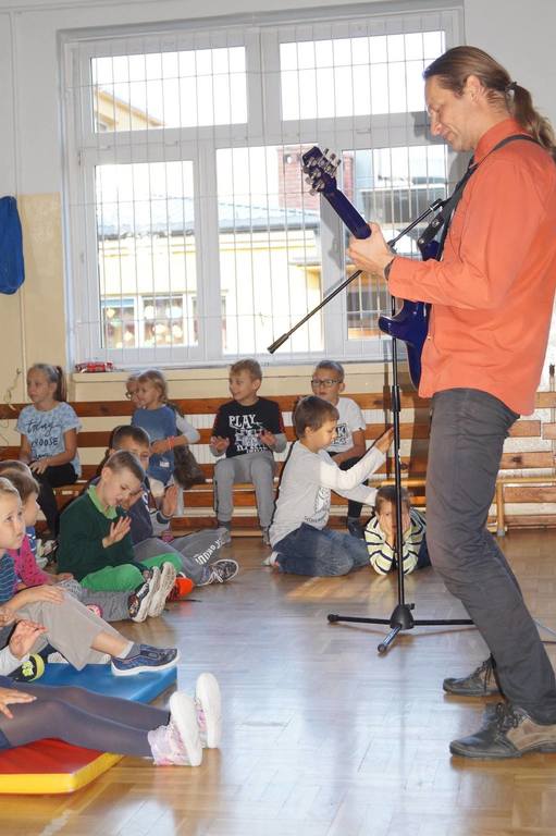 22 września 2016 r odwiedził nas muzyk p. Marcin Jóźwik, który zabrał wszystkie dzieci w podróż z muzyką. Dzieci miały okazję poznać wiele ciekawych instrumentów muzycznych oraz wziąć udział w zabawach i konkursach.