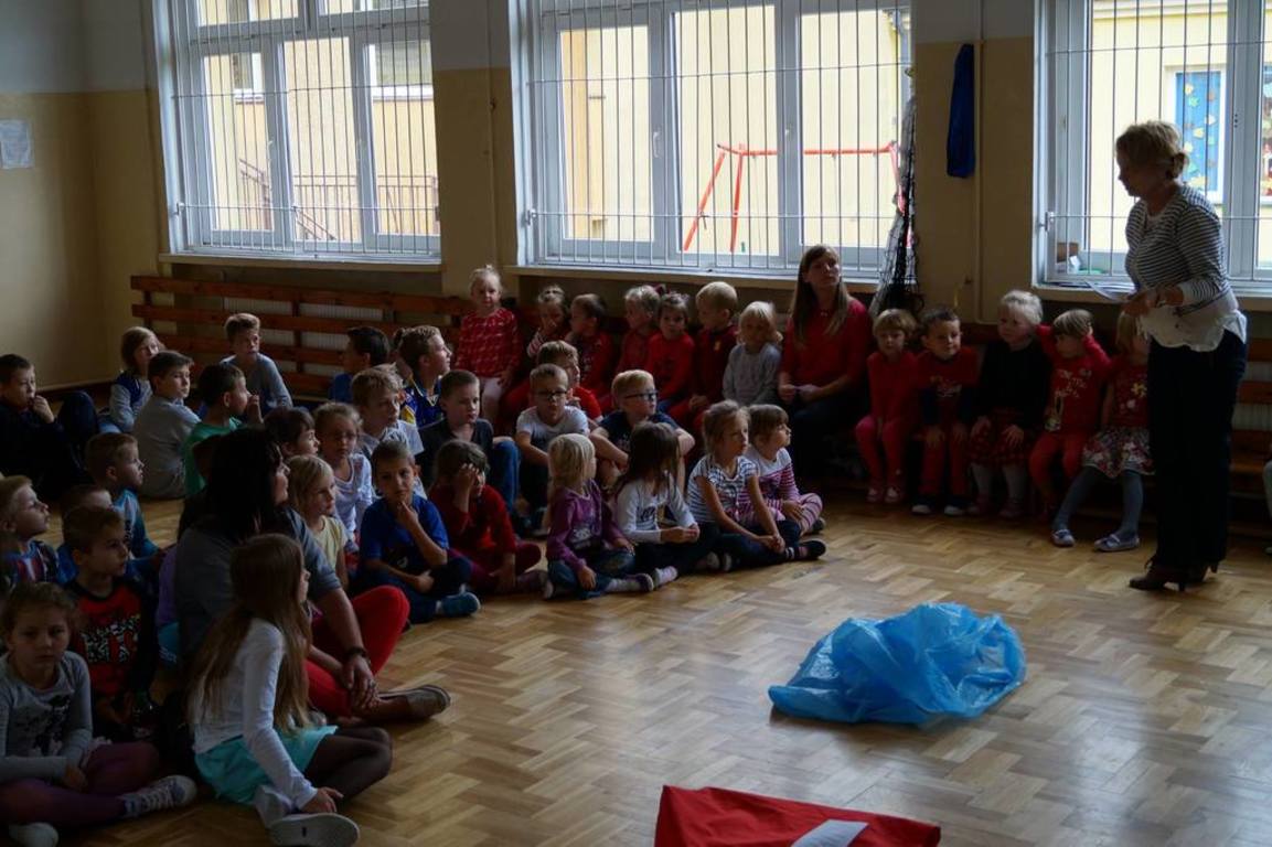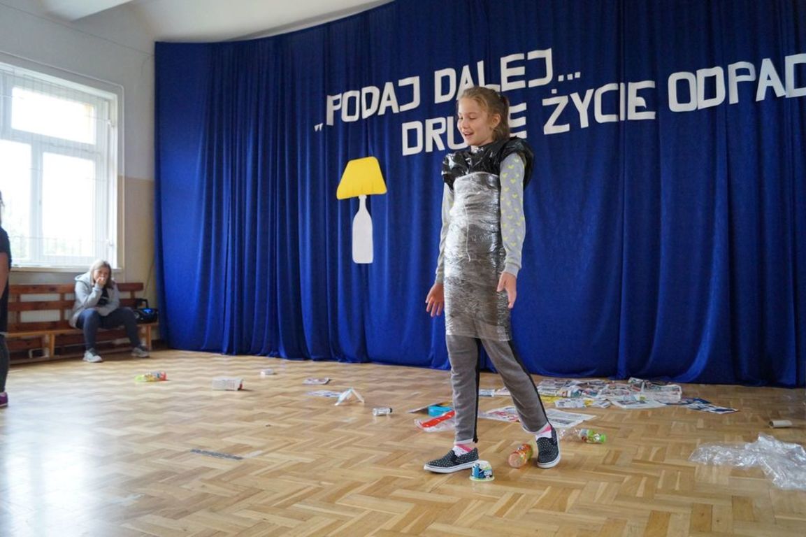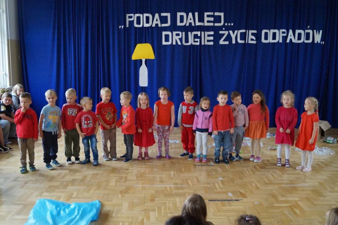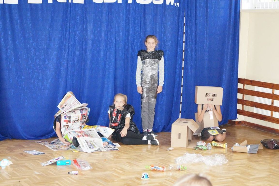 Dnia 23 września nasza społeczność szkolno – przedszkolna uczestniczyła w ekologicznym apelu zorganizowanym z okazji Sprzątania Świata – Polska 2016 pod tegorocznym hasłem „Podaj dalej… Druga szansa odpadów”. Na początku zapoznano wszystkich z genezą i ideą akcji a następnie przedstawiono inscenizację „Rzecz o recyklingu” inspirowaną „Dziadami” Adama Mickiewicza w wykonaniu uczniów klasy V. W ten sposób zwrócono uwagę na poszanowanie zasobów i efektywną segregację, zmniejszanie ilości odpadów poprzez dawanie im „drugiego życia” oraz uświadomienie nam wszystkim, jak dużo wytwarzamy odpadów podczas codziennych czynności. Apel zakończyli przedszkolacy z grupy Pszczółek wykonując piosenkę o tematyce ekologicznej.