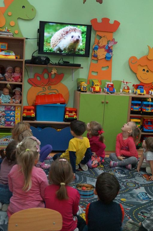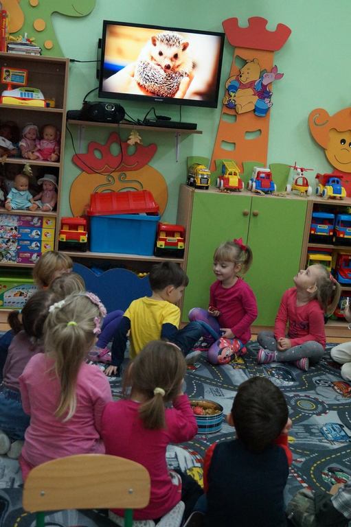 10 listopada dzieci z grupy „Żabek” podczas wspólnych gier i zabaw dowiedziały się różnych ciekawostek o tych uroczych ssakach, m.in. wiedzą już co tak naprawdę owe ssaki jedzą. Tego dnia w naszej sali odbył się również spektakl Leniwego Jeżyka Ferdusia, śpiewaliśmy tematyczne piosenki,uczyliśmy się jeżykowych rymowanek oraz każdy wykonał swojego kolczastego zimowego śpioszka.
