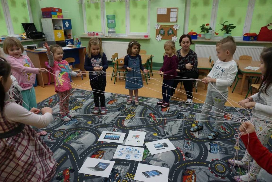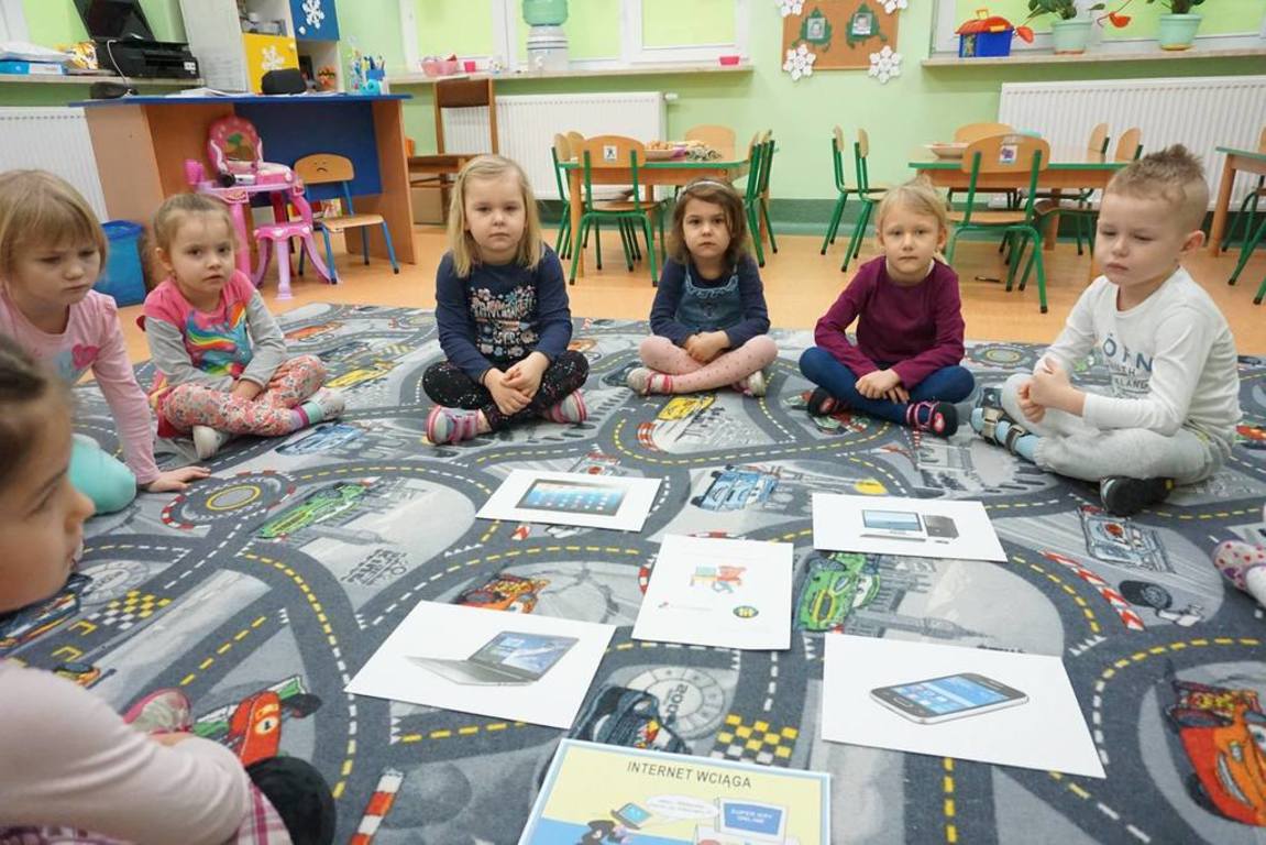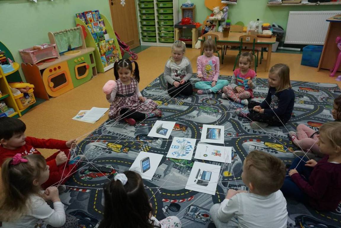 Mały Miś i Dzień Bezpiecznego Internetu" to kolejna akcja w ramach Międzynarodowego Projektu "Mały Miś w świecie wielkiej literatury", która tym razem 9 lutego wprowadziła dzieci z grupy Żabek w ważny temat dotyczy przedszkolaków, które coraz częściej sięgają po telefony, tablety czy laptopy. Podstawowym celem zajęć było zapoznanie dzieci z Internetem oraz uwrażliwienie ich na zagrożenia związane z korzystaniem z sieci. Żabki poprzez zadania i wspólne zabawy dowiedziały się co to jest internet, co znaczy sieć internetowa, jak można z niej bezpiecznie korzystać oraz do czego służy. Następnie z wielką uwagą oglądnęli bajkę edukacyjną „Owce w sieci – Tajemniczy przyjaciel” oraz wysłuchali opowiadania Misia Bruno. Tworzenie Kodeksu korzystania z Bezpiecznego Internetu, rozmowa na temat przygód owieczki i Misia Bruno pomogła uświadomić przedszkolakom, że internet jest wielką skarbnicą nie tylko gier i bajek, ale można w nim znaleźć wiele użytecznych i bezpiecznych rzeczy dla dzieci. Na koniec podczas zabawy ruchowej Żabki, stały się małymi „komputerkami". Rzucając do siebie kłębek wełny stworzyły internetową sieć, wszyscy zgodnie stwierdzili, że Internet to sieć komputerowa, dzięki której różni ludzie mogą się łączyć, z kim chcą, rozmawiać, wspólnie się bawić i poznawać wiele ciekawych rzeczy. Bez wątpienia dzisiejsze zajęcia pokazały przedszkolakom, że Internet to fajna zabawa, ale przede wszystkim uświadomiły również o zagrożeniach z niego płynących.