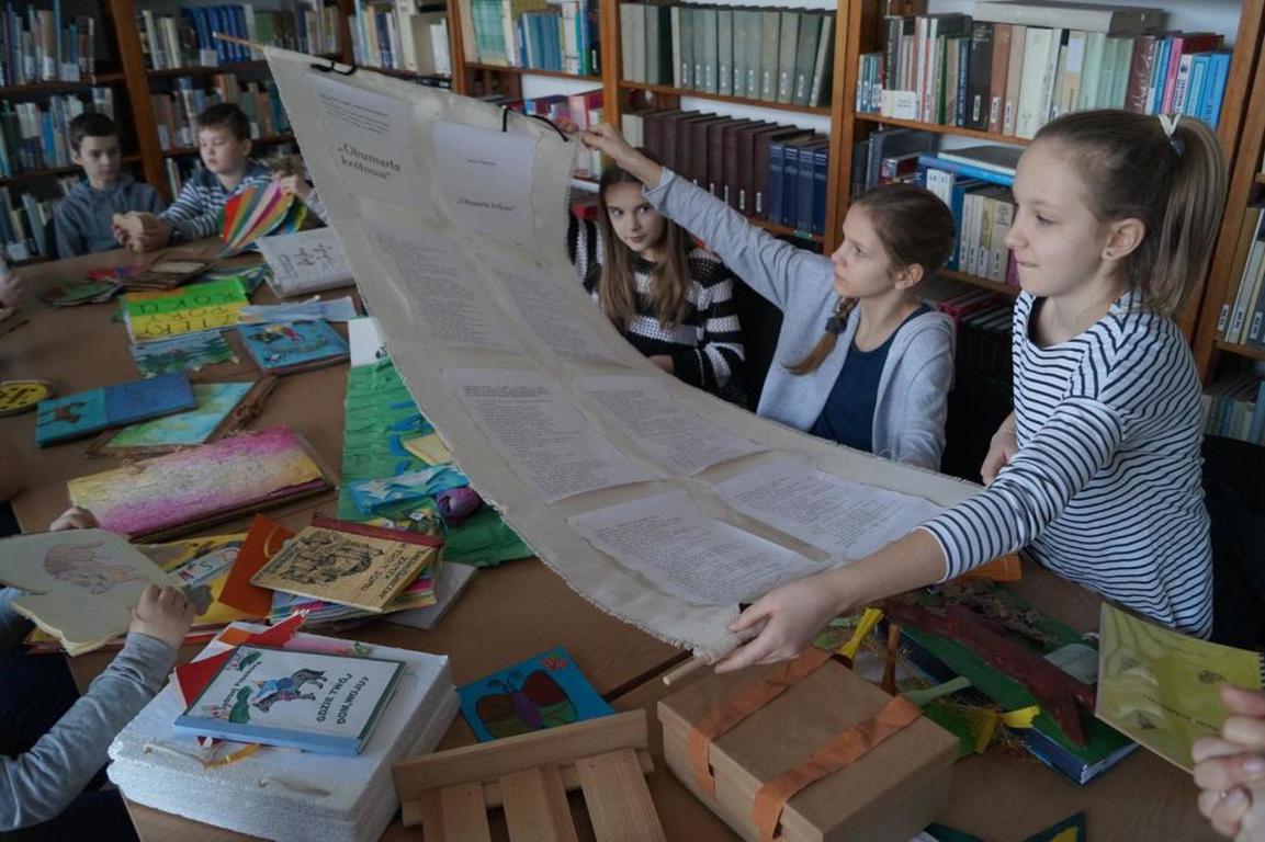 Dzięki uprzejmości pani Agnieszki Sokołowskiej z biblioteki pedagogicznej w Nowym Dworze Mazowieckim, uczniowie naszej szkoły uczestniczyli w warsztatach tematycznych. Zajęcia dotyczyły konkursu „Wydajemy własną książkę”. Dzieci zostały zapoznane z regulaminem, a także mogły obejrzeć prace zgromadzone po poprzednich edycjach. Po spotkaniu zrodziły się nowe pomysły, a dzieci pełne chęci już zabierają się do pracy. Prace można wykonywać do 3 maja 2017r. Zachęcam do udziału w konkursie.