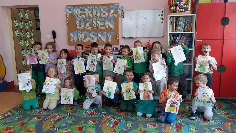 Już wczoraj przedszkolaki z Kazunia Nowego rozpoczęły dwudniowe obchody Pierwszego Dnia Wiosny. W poniedziałek odwiedził nas teatrzyk z przedstawieniem " Pani Wiosna Radosna ", w którym przezabawny Świstak o małym rozumku i bardzo roztropna Wiosna opowiedzieli historię przebudzenia zwierząt i roślin po zimie. Było dużo śmiechu, tańca i zabawy ale było również przesłanie ekologiczne - "DBAJMY O PRZYRODĘ ". W tym duchu obchodziliśmy również dzisiejszy 1 Dzień Wiosny tym razem - kalendarzowym. Zrobiliśmy Eko Marzannę którą wysłaliśmy z wiatrem do morza. Następnie dzieci doskonale bawiły się w podchodach z zapałem szukając oznak wiosny . Zwieńczeniem dwudniowych obchodów Dnia Wiosny było namalowanie jej postaci. Wiosna z obrazów dzieci miała wszystkie kolory świata. Pozostawiła również medale dla każdego przedszkolaka i piękną pogodę na cały dzień.