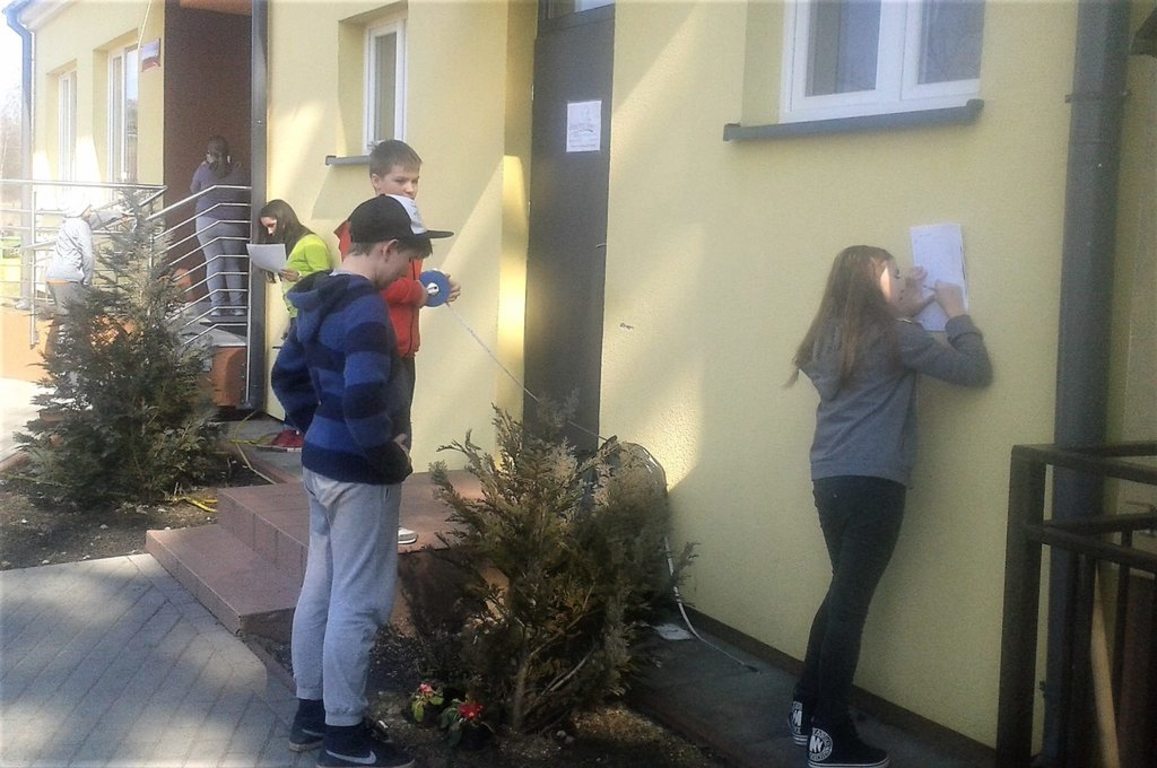 Trwają prace nad realizacją pierwszego projektu matematyczno-przyrodniczego dla klas 4-6 pt. „Bezpieczna szkoła”. Końcowymi produktami działań uczniów będą wykonane plany ewakuacyjne budynku szkolnego oraz szkolenie i udział w próbnym alarmie. W pierwszym tygodniu uczniowie wytyczyli najlepsze drogi ewakuacyjne z różnych miejsc na terenie budynku, szukali wielokątów wokół szkolnego boiska oraz wykonali próbne szkice obrysu szkoły. Drugi tydzień upłynął nam na mierzeniu ścian, ustaleniu skali pomniejszającej, przeliczeniu wymiarów i pierwszych rysunkach na papierze milimetrowym.