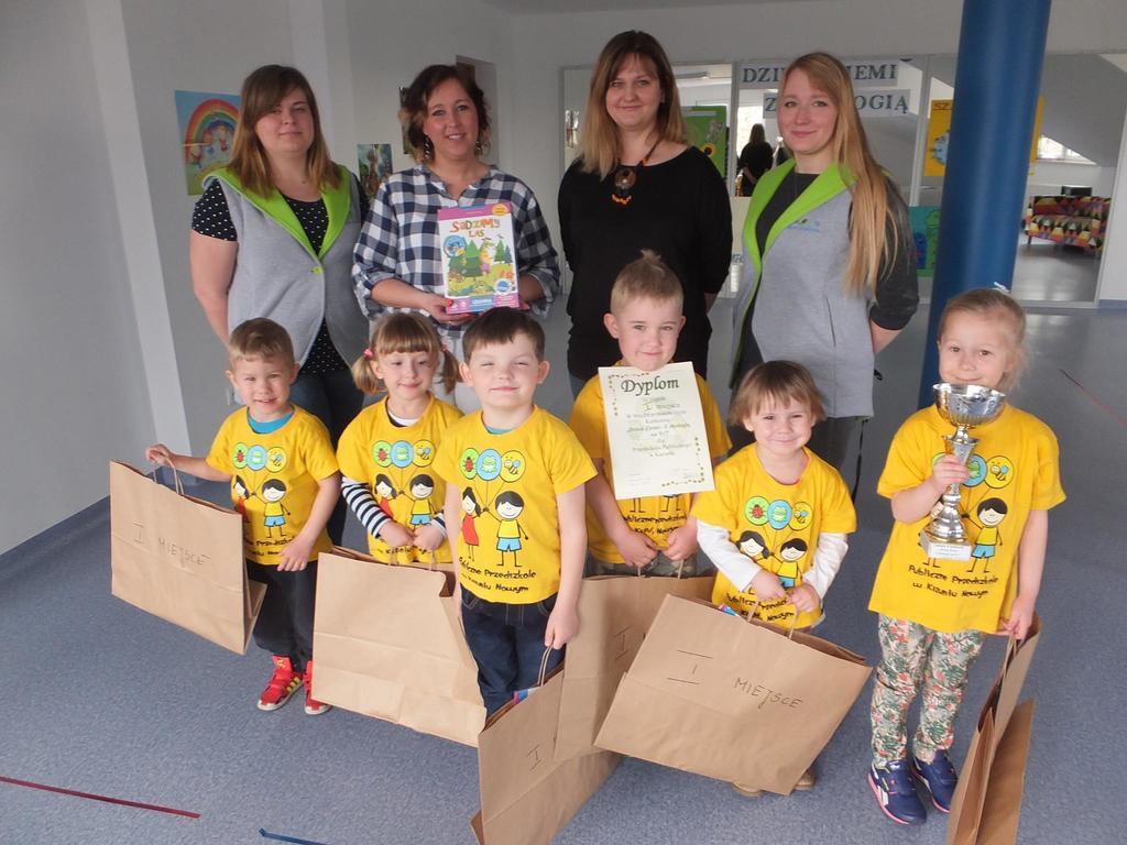 W dniu 21 kwietnia dzieci z naszego przedszkola zostały zaproszone do międzyprzedszkolnego konkursu ekologicznego. Podczas licznych konkurencji dzieci wykorzystywały swoją wiedzę ekologiczną. Panowała zgodna rywalizacja i radość ze wspólnej zabawy. Punktem kulminacyjnym konkursu było ogłoszenie wyników i rozdanie nagród. Nasze Przedszkolaki zajęły I miejsce Brawo MY!