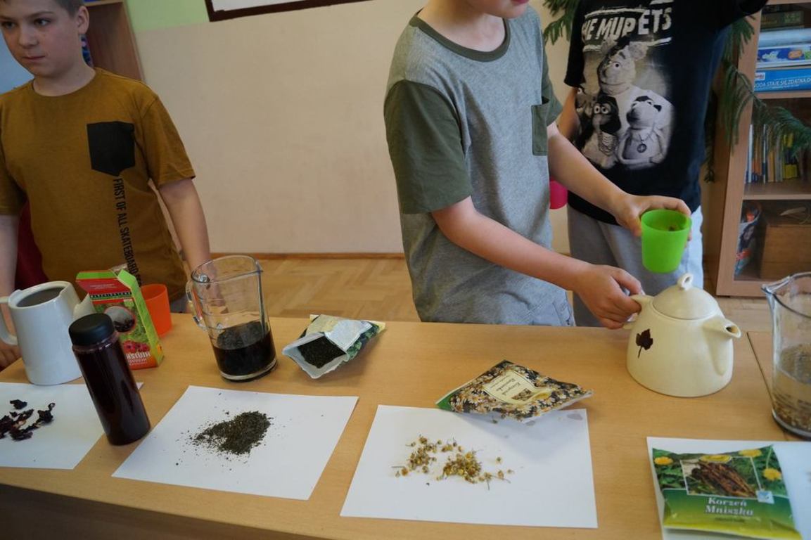 Dnia 26 maja odbyło się pierwsze spotkanie w ramach zajęć projektowych. Na lekcji uczniowie przedstawili informacje o ziołach stosowanych w ich domach, a następnie pracując w grupach podali listę dolegliwości, na które warto znać naturalne leki. Poza tym podczas tego spotkania dzieci mogły skosztować wcześniej przygotowanych naparów m. in. z hibiskusa, rumianku, pokrzywy, korzenia mniszka. Zajęcia te miały zainicjować u uczniów wykonanie ziołowej apteczki. (Projekt realizują Federacja Inicjatyw Oświatowych (lider) i Fundacja Civis Polonus (Partner). Projekt jest dofinansowany z Programu RPO WM 10.1.2.)