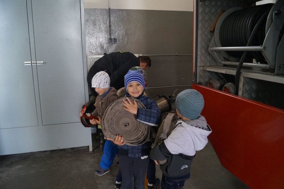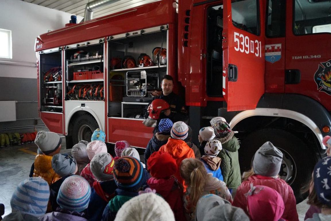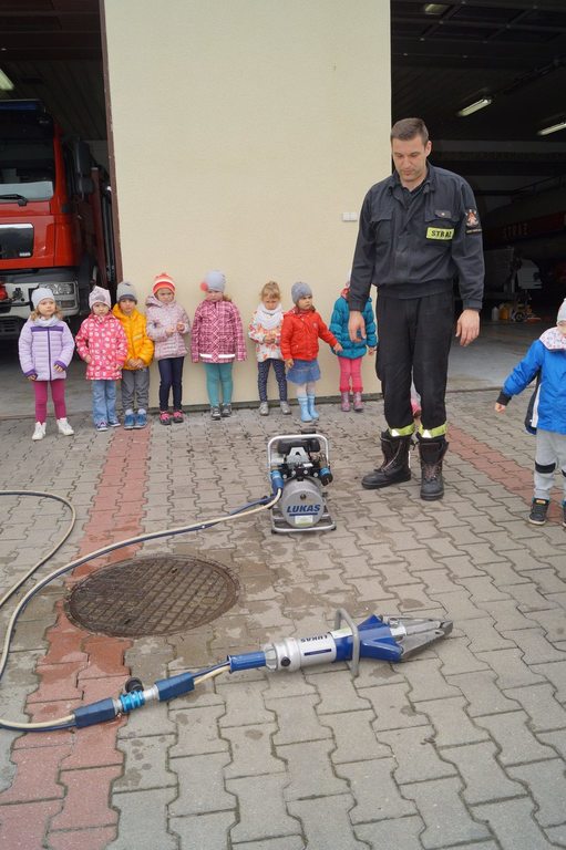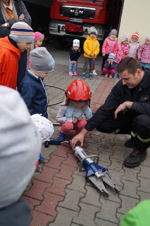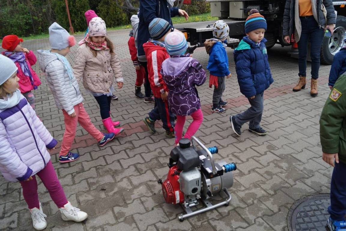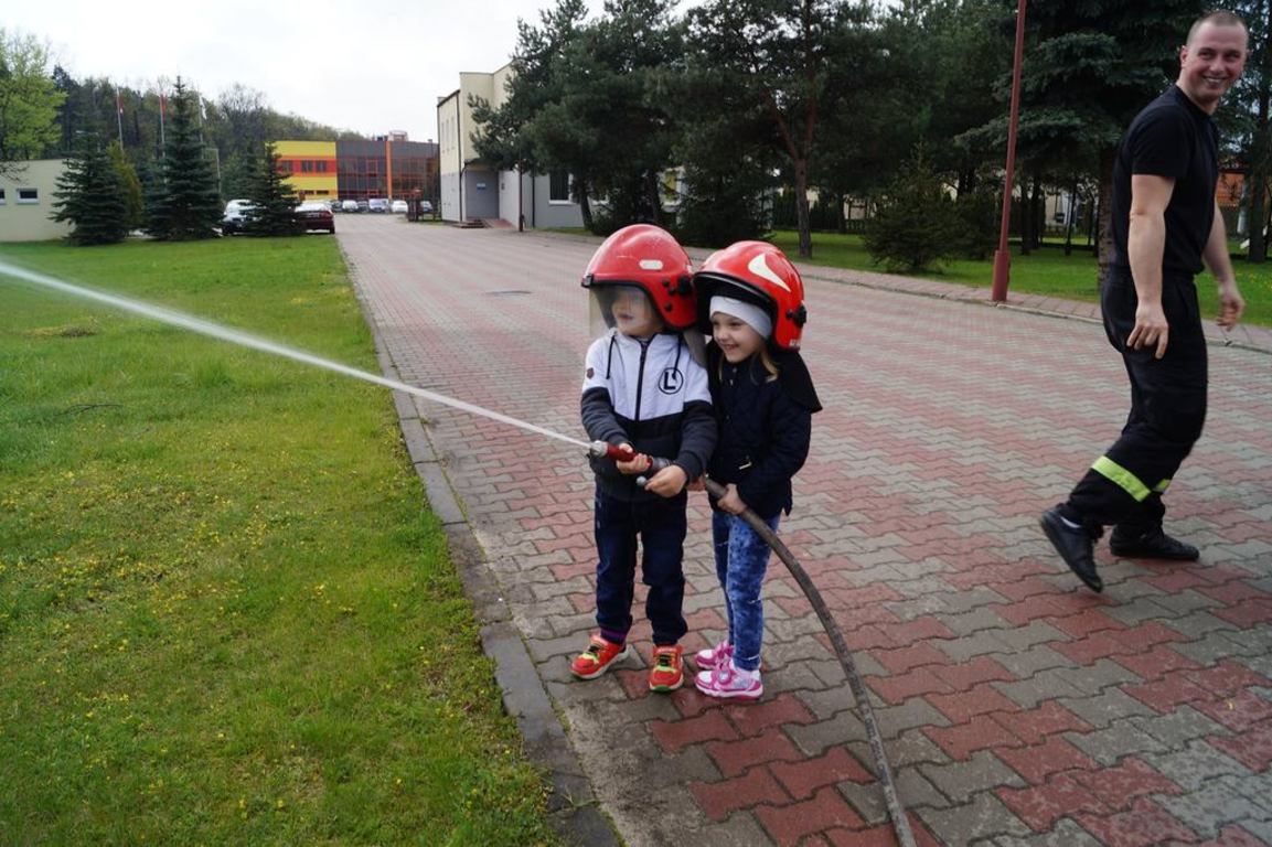 Wycieczki do siedziby Straży Pożarnej stały się już u nas w przedszkolu tradycją, dlatego też 5 maja przedszkolaki udały się na wycieczkę do Państwowej Straży Pożarnej w Nowym Dworze Mazowieckim. Strażacy zaprezentowali sprzęt pożarniczy stanowiący wyposażenie jednostki. Dzieci oglądały różnorodne wozy strażackie oraz ich wyposażenie. Przedszkolaki zapoznały się z zadaniami realizowanym przez PSP, sposobami alarmowania oraz zachowania się w przypadku zagrożenia. Dzieci utrwaliły sobie numer telefonu do Straży Pożarnej 998 i numer alarmowy 112. Były również świadkami niebywałej sprawności strażaków przebierających się błyskawicznie w strój bojowy i wyjeżdżających do wypadku samochodowego do Kazunia Polskiego. Na koniec spotkania przy pomocy dzielnych strażaków przedszkolaki mogły poćwiczyć umiejętność lania wody z szybkiego natarcia. Dziękujemy STRAŻAKOM z PSP w NDM za mile spędzony czas i życzymy tylu powrotów co wyjazdów.