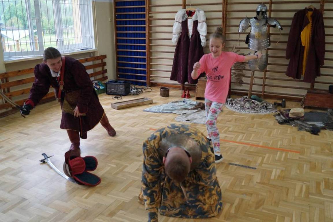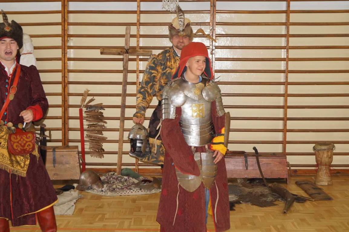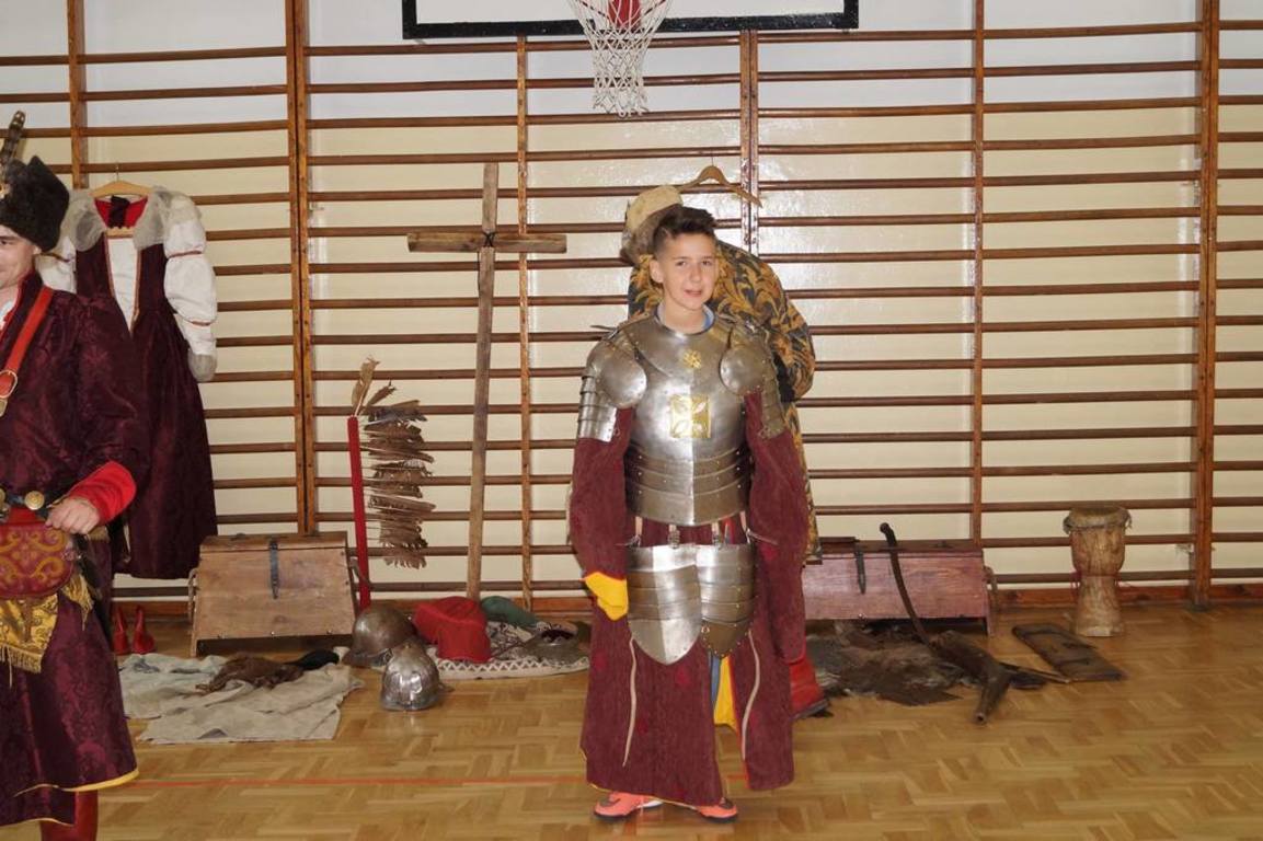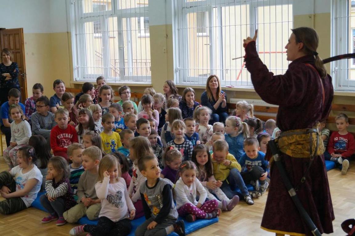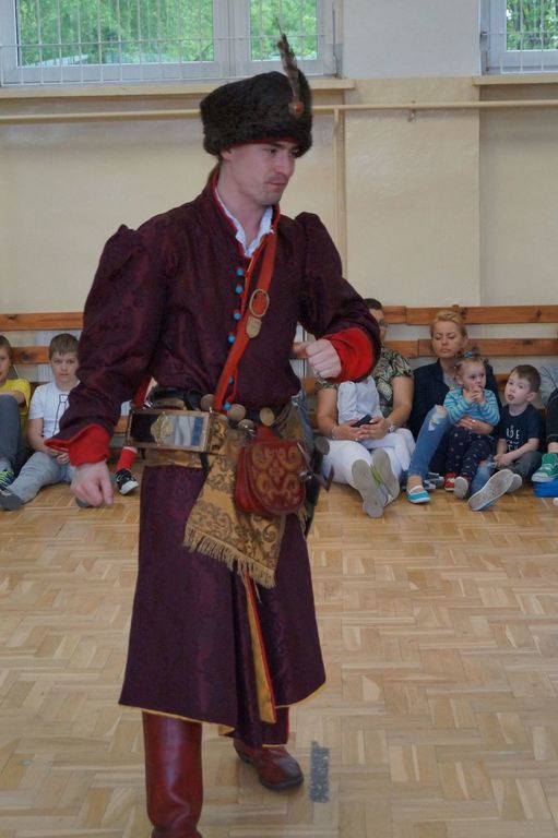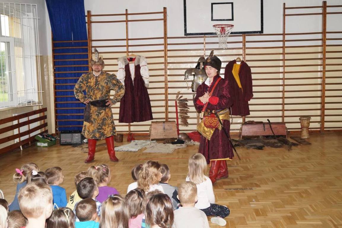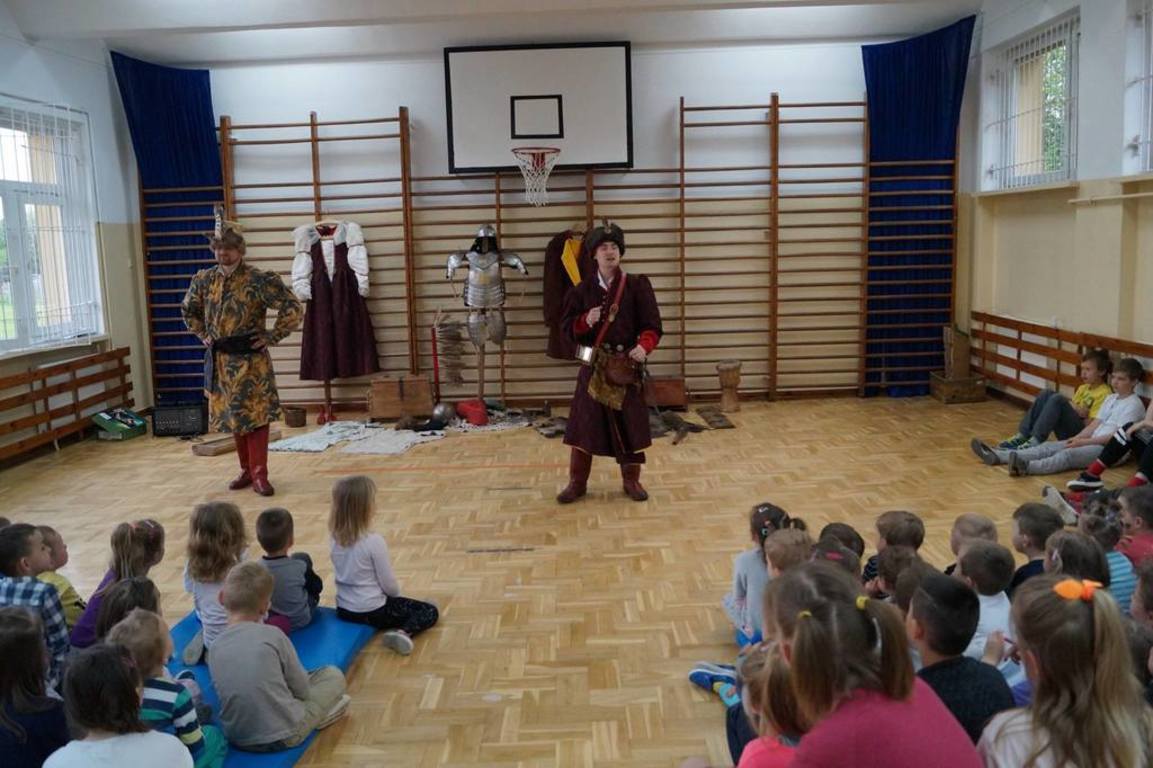 15 maja 2017 r. naszą szkołę odwiedziła grupa rekonstrukcji historycznej „ARKONA” z Torunia, aby przeprowadzić żywą lekcję historii pt. „Jak Sobieski pod Wiedniem wojował”. Aktorzy przybliżyli uczniom najważniejsze wydarzenia z historii Polski od panowania Stefana Batorego do Jana III Sobieskiego. Dzieci mogły zobaczyć, jak wyglądał w tamtych czasach strój chłopski i szlachecki oraz zbroja husarza. Aktorzy pokazali również swoje umiejętności władania szablą i przedstawili rekonstrukcję walki z jej użyciem. Na zakończenie uczniowie wzięli udział w quizie sprawdzającym zdobyte w czasie lekcji wiadomości. Za znajomość faktów historycznych można było otrzymać monetę z wizerunkiem Jana III Sobieskiego, która była bita na miejscu. Zwieńczeniem spektaklu był pokazowy wystrzał z broni czarno- prochowej. Była to lekcja niezwykle ciekawa okraszona dowcipem i licznymi ciekawostkami.