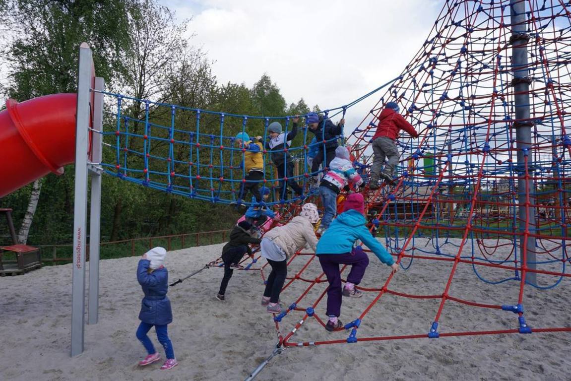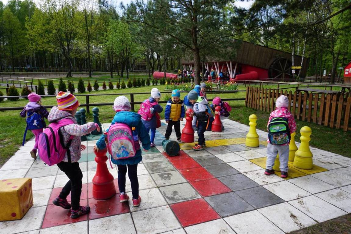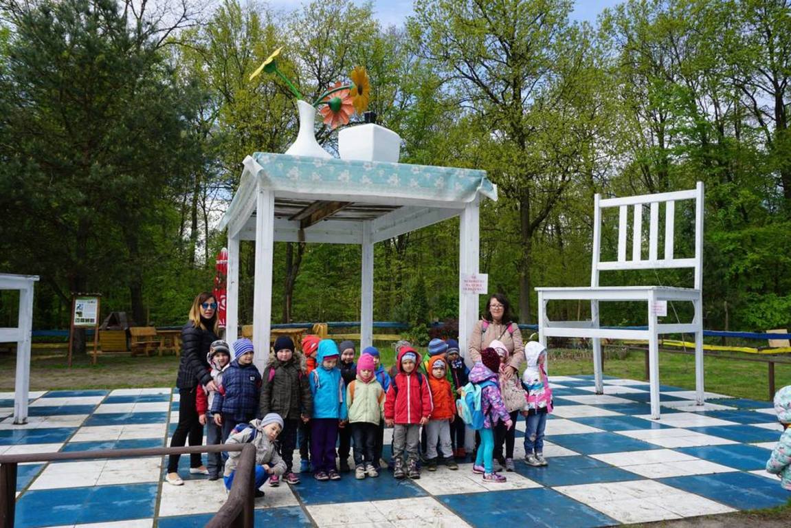Na placu zabaw dzieci wykazywały się wprost niespożytą energią. Miały także możliwość poustawiania gigantycznych szachów, obejrzenia "Mebli Olbrzyma" w skali 4:1 oraz fontanny w postaci kranu, z którego leci woda, chociaż nigdzie nie jest podłączony.