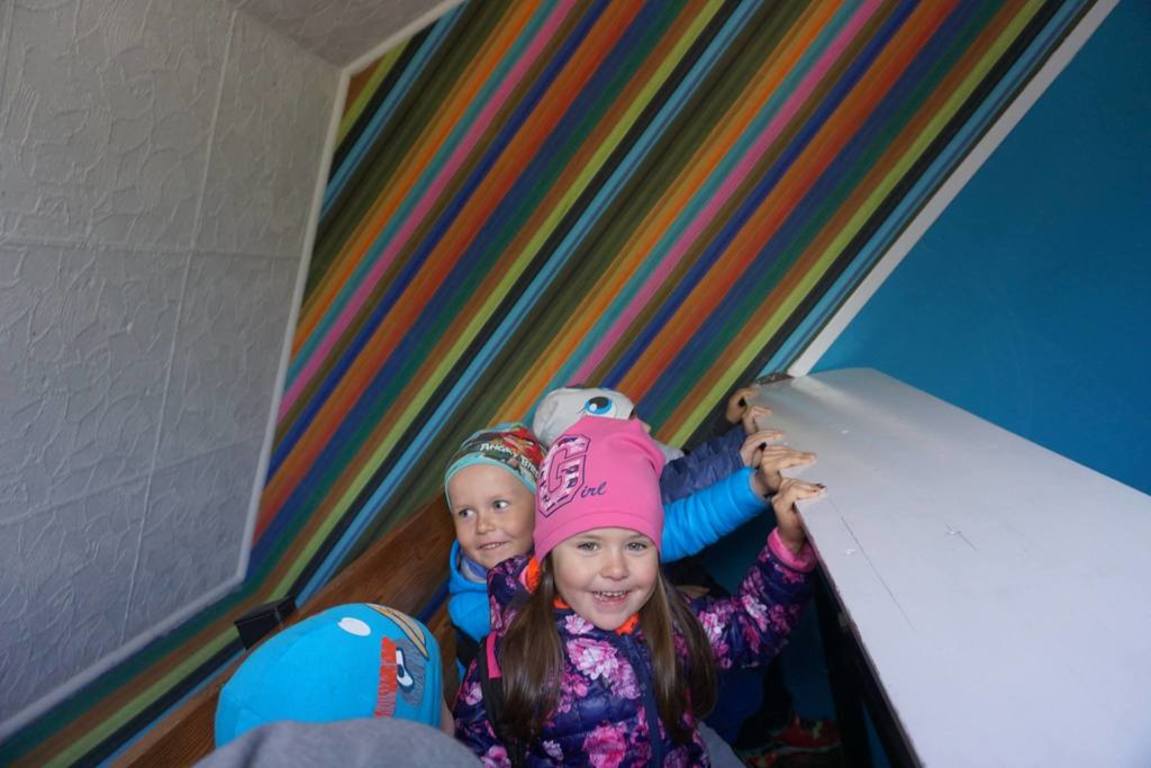 W "Latającej Chacie" dzieci mogły przekonać się, co się dzieje, gdy podłoga jest pod kątem, a ściany mają tapetę w pionowe pasy (dezorientacja wywołana sprzecznością sygnałów docierających do mózgu z różnych zmysłów powodowała niemożność poruszania się w normalny sposób).
