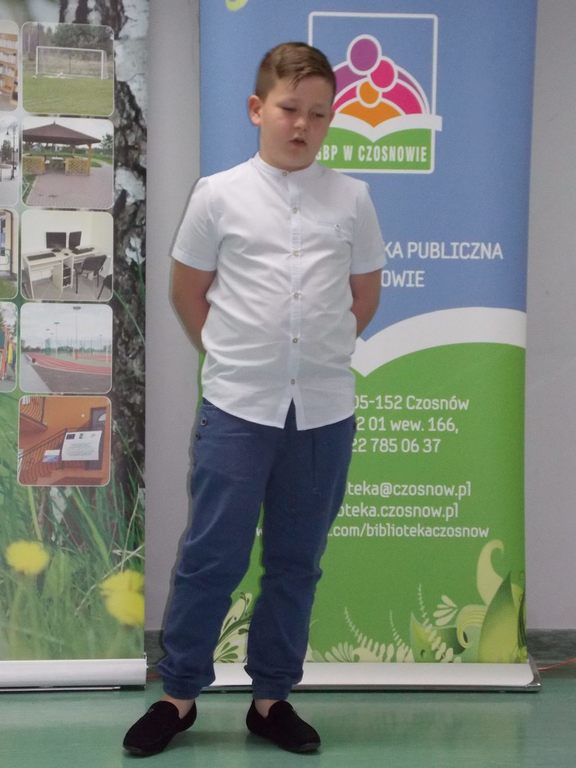 Podczas „Nocy bibliotek” 3 czerwca 2017r. w Czosnowie, w konkursie recytatorskim zaprezentowały się dzieci z klasy IV i V : Oskar Sanecki, Aleksandra Latos i Natalia Floriańczyk. Ogromnie cieszy fakt, że uczniowie angażują się nie tylko podczas zajęć szkolnych, ale też chcą reprezentować szkołę