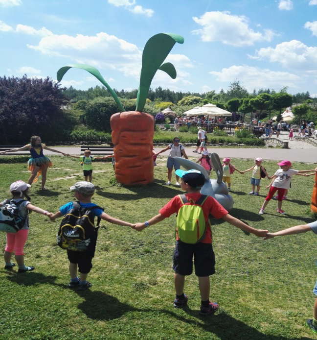 Tego dnia na kilka godzin przenieśliśmy się do świata fantazji. Bawiliśmy się w Domu Czarodzieja i na polu gigantycznych marchewek. Poznaliśmy Robanki, Bulwiaki i Mordole. Odwiedziliśmy Gród Krasnoludów, wybraliśmy się do Mroczyska, w którym niepodzielnie rządzi straszliwy smok… i niestety jedyną rzeczą, która nas ograniczała w tym dniu był czas, który pędził nieubłaganie, no i może troszeczkę tęsknota za rodzicami. Zmęczeni, ale szczęśliwi wróciliśmy do domów i chociaż mówi się, że ta prawdziwa Magia jest w nas to zapewne wrócimy jeszcze do Magicznych ogrodów w Janowcu.