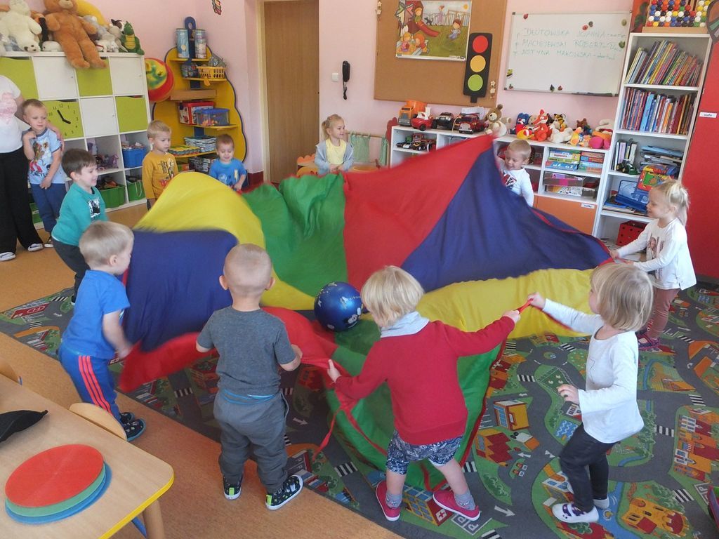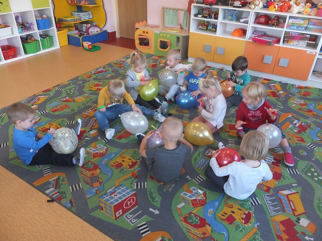 28 września dzieci z grupy ,,Biedronki” obchodziły Dzień Przedszkolaka. Przedszkolaki rzucały do celu, chodziły z krążkiem na głowie, uczestniczyły w zabawach z wykorzystaniem chusty animacyjnej oraz zmagały się z balonami, które na końcu ozdobiły, zgodnie z własnymi pomysłami. Radość i śmiech świadczyły o wspaniałej zabawie