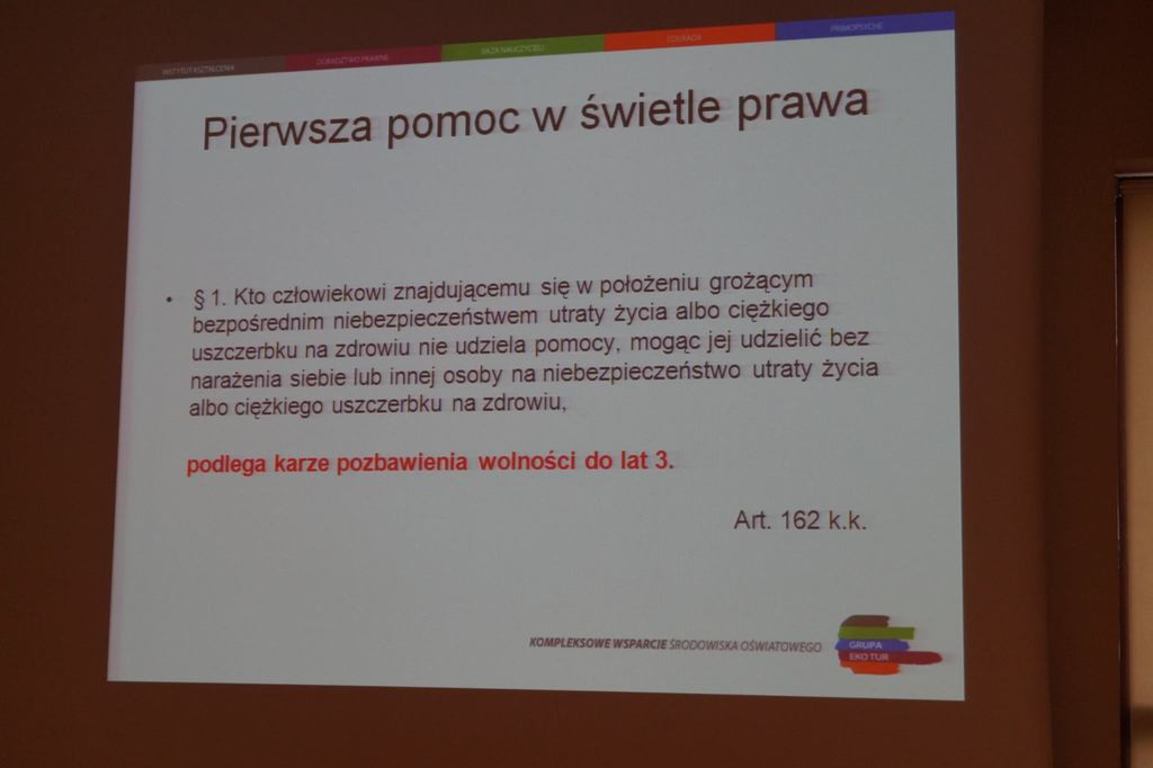 29 września - 01 października 2017 r .Nauczyciele wraz z pracownikami Administracji i Obsługi podnosili swoje kwalifikacje zawodowe z zakresu udzielania pierwszej pomocy przedmedycznej. Był też czas na relaks na kręgielni,strzelnicy i zwiedzaniu Torunia. Polecamy ośrodek OLENDER w Wielkiej Nieszawce. . Szkolenie zapewniła firma EKO - TUR. Dziękujemy Pani Aleksandrze Możejko z EKO-TUR za zorganizowanie szkolenia i koordynacje wyjazdu. Szkolenie z Pierwszej Pomocy Przedmedycznej poprowadził p. Kamil Bonisławski.