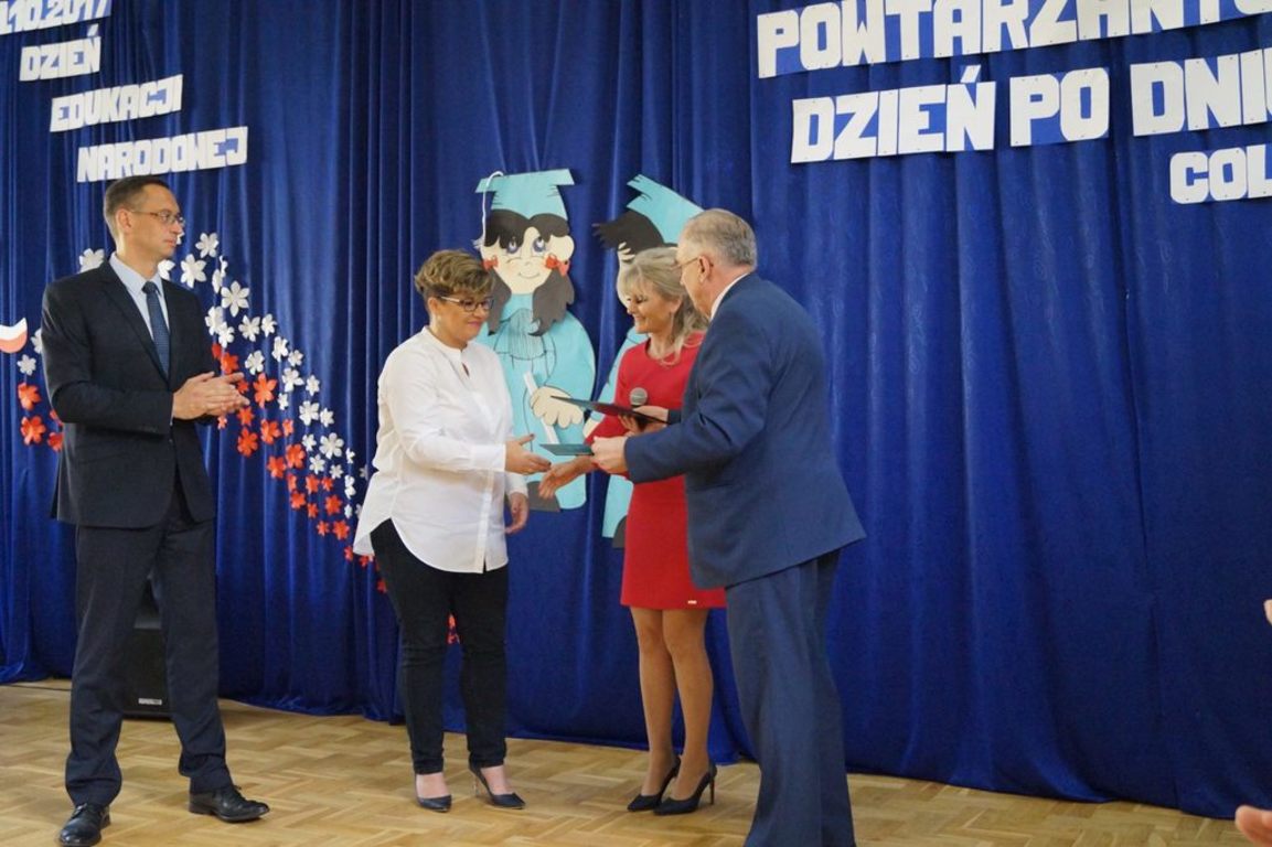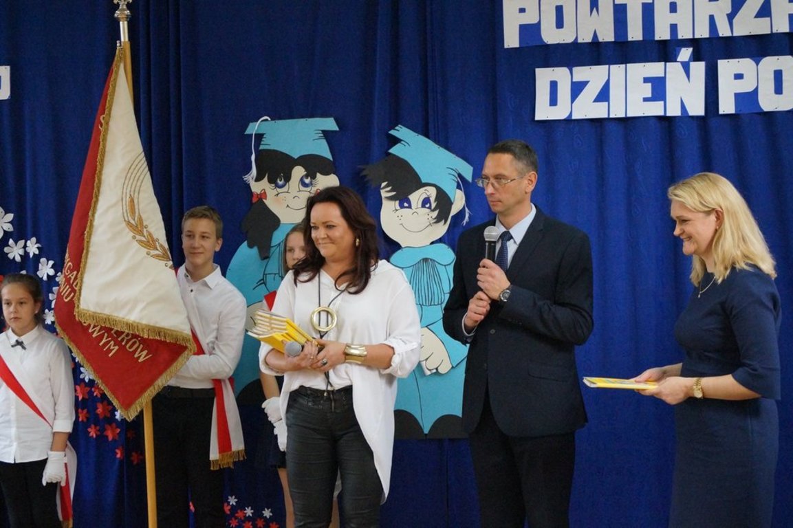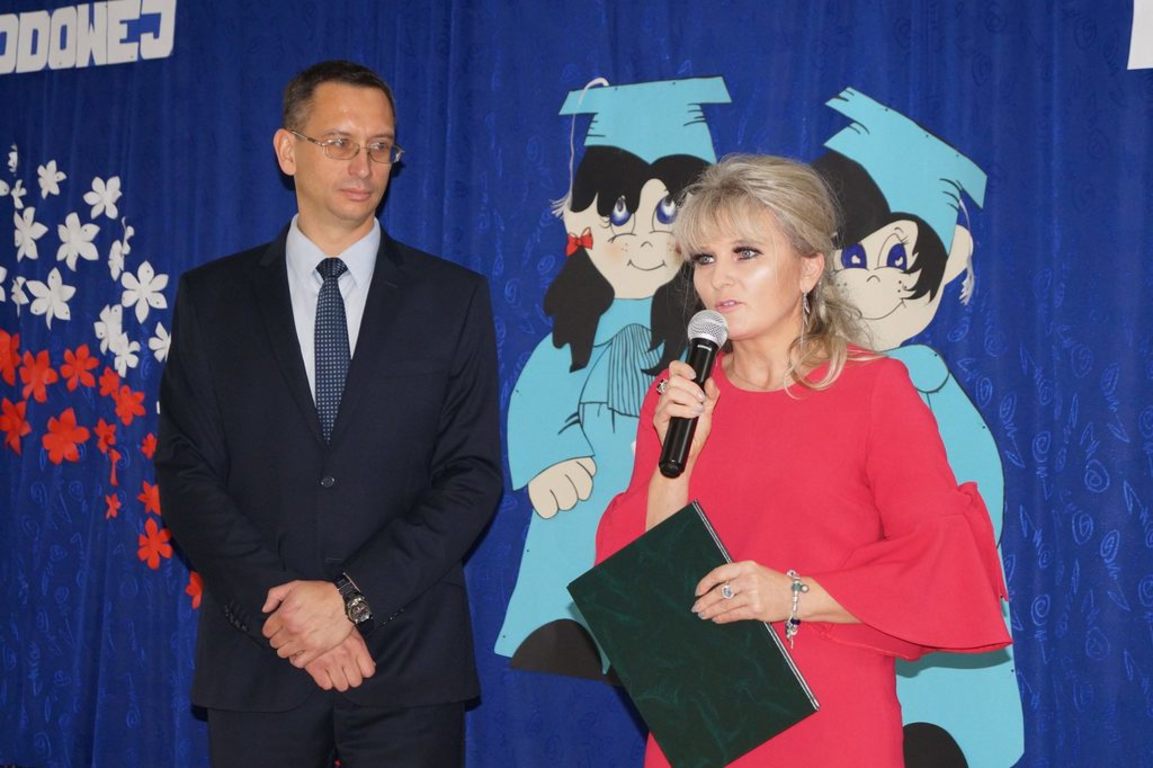 Zaproszeni goście wręczyli nagrody dla członków Rady Pedagogicznej za wyróżniającą pracę dydaktyczną i wychowawczą. Następnie odbyło się Ślubowanie Klasy Pierwszej oraz pasowanie na "pierwszoklasistę"