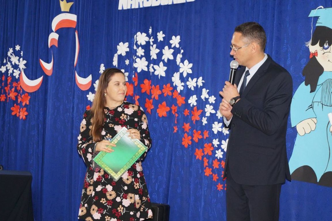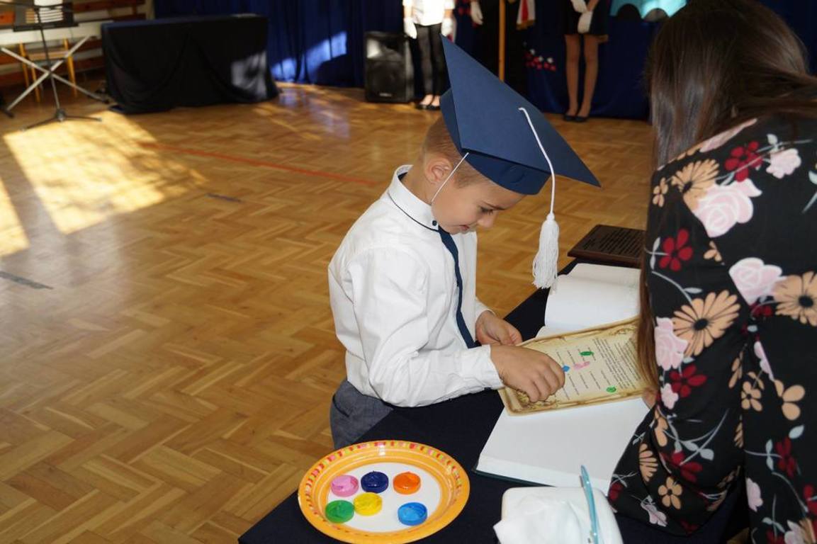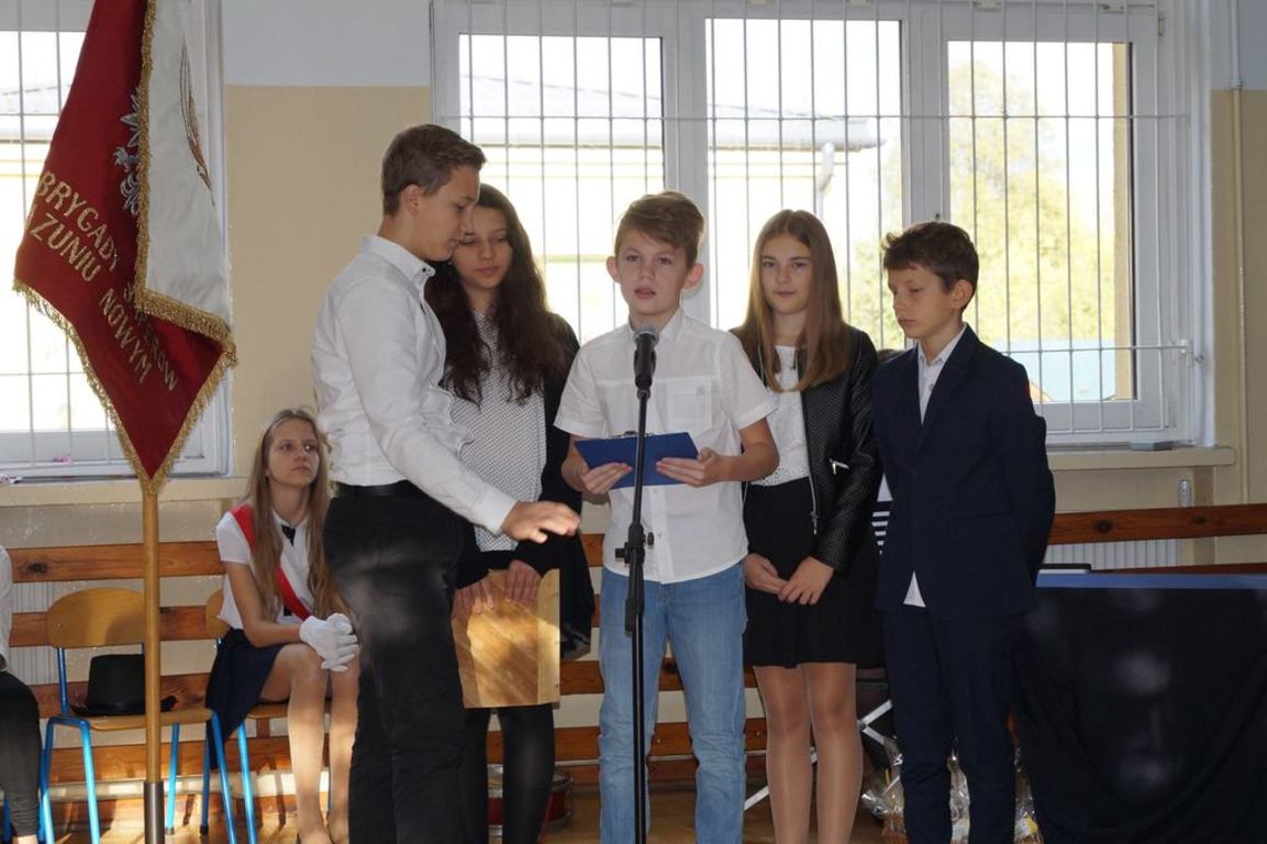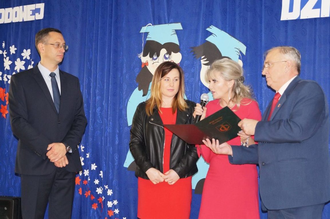 Zaproszeni goście wręczyli nagrody dla członków Rady Pedagogicznej za wyróżniającą pracę dydaktyczną i wychowawczą. Następnie odbyło się Ślubowanie Klasy Pierwszej oraz pasowanie na "pierwszoklasistę"
