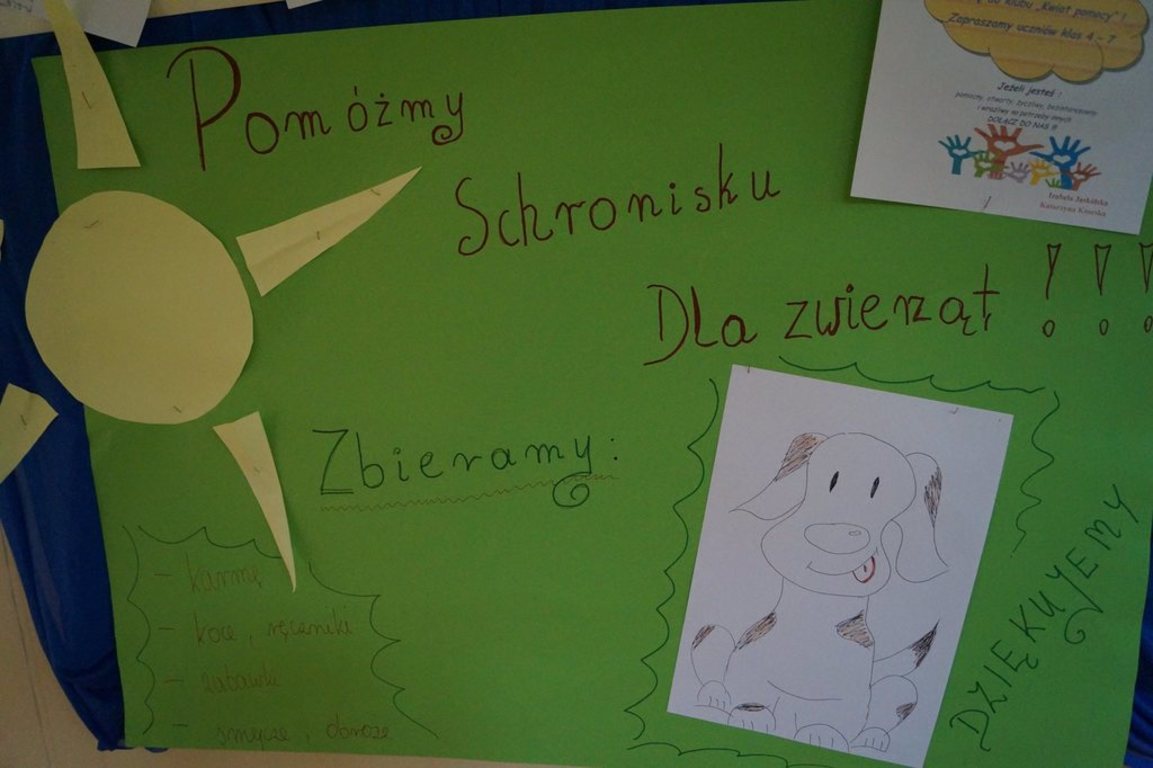 Samorząd Uczniowski rozpoczął nowe działania w roku szkolnym 2017/2018. Zachęcamy do udziału w zbiórce na Schronisko dla zwierząt. Akcja potrwa do 15.11.2017r. Przyjmujemy karmę, koce, ręczniki, dywaniki i inne rzeczy, które przydadzą się psiakom. Po zakończeniu zbiórki, zebrane rzeczy wolontariusze z naszej szkoły zawiozą do „Fundacji Przyjaciele Braci Mniejszych” w Nowym Dworze Mazowieckim.