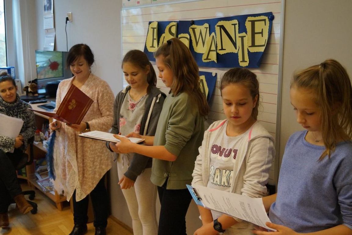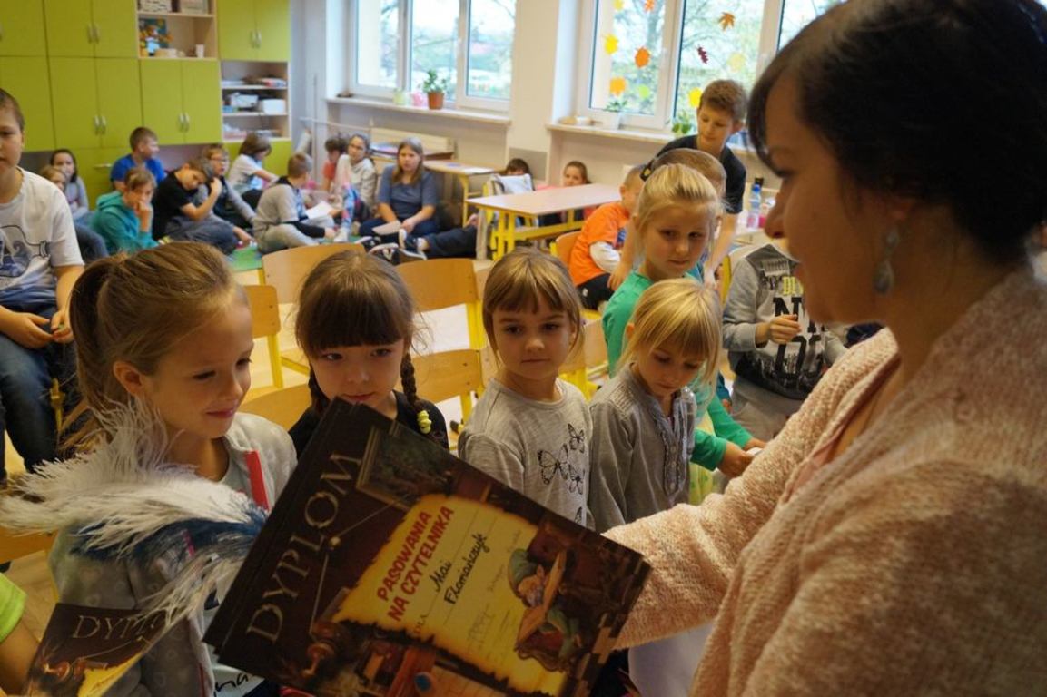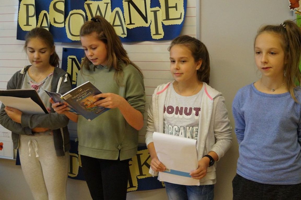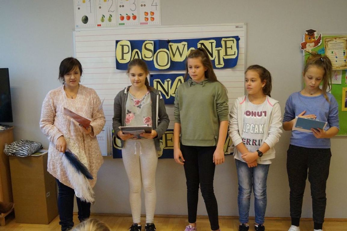Dnia 25.10.2017 r. odbyło się pasowanie na czytelnika. Uczennice klasy VI przygotowały część artystyczną. Klasa I złożyła przysięgę szacunku dla książek. Uczniowie, po pasowaniu piórem, otrzymali dyplomy.