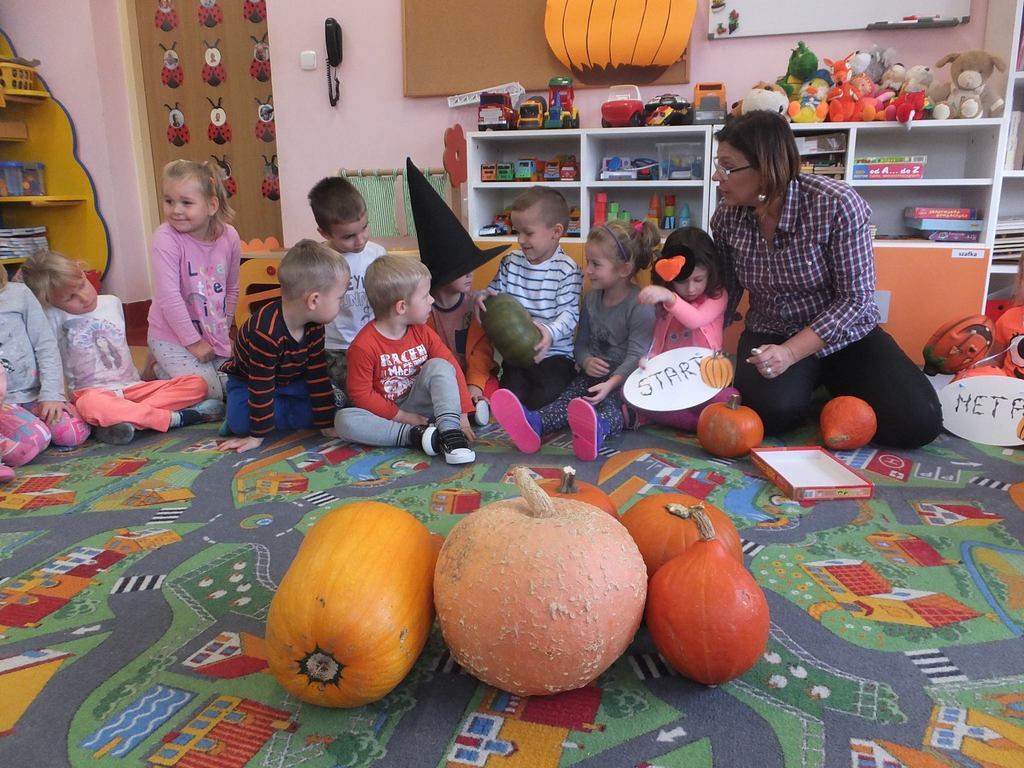 W piątek 27 października, w ramach obchodów Dnia Dyni dzieci ze wszystkich grup miały okazję pogłębić wiadomości na temat wartości odżywczych dyni, sprawdzić co kryje się w wielkiej pomarańczowej kuli, sprawdzić jak zwinna jest w konkurencjach sportowych dynia :-)