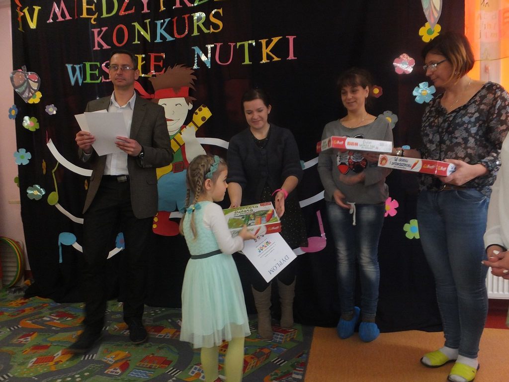 Dyplomy wraz z nagrodami wręczył Pan Dyrektor ZS-P z Kazunia Nowego – Krystian Buszta, p. Katarzyna Koseska (nauczyciel muzyki z Kazunia Nowego) oraz Sylwia Pawłowska (nauczyciel wychowania przedszkolnego z Kaliszek).