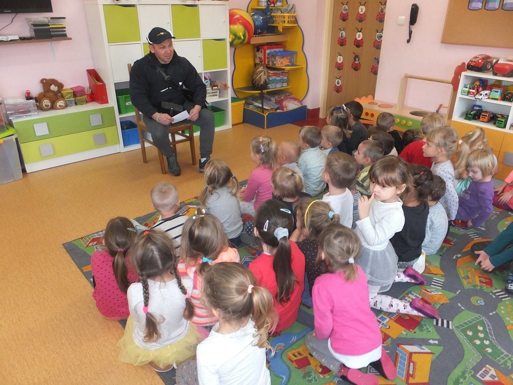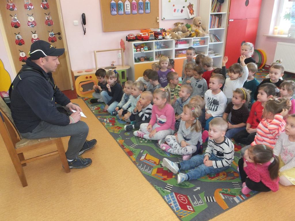 Przedszkolaki na początku spotkania zapoznały się z wyglądem stroju listonosza, granatową kurtką oraz czapką z umieszczonym na niej symbolem poczty – trąbką. Pan listonosz opowiedział jaką drogę pokonuje list zanim dotrze od nadawcy do adresata, pokazał jak prawidłowo adresuje się przesyłki, paczki i listy. Podkreślił istotę znajomości własnego adresu zamieszkania i czytelnego wypełniania przekazów pocztowych. Wręczyliśmy także nasze listy do Świętego Mikołaja.
