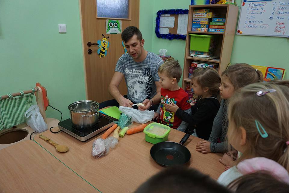 Jak na żołnierza przystało tata naszego Mikołaja, pan Kamil Wróblewki w piątkowe popołudnie na kuchcikowie z rodzicami przygotował dla Pszczółek smaczną grochówkę wojskową. Dziękujemy panu Kamilowi za podjęcie gastronomicznego wyzwania i mile spędzony czas.