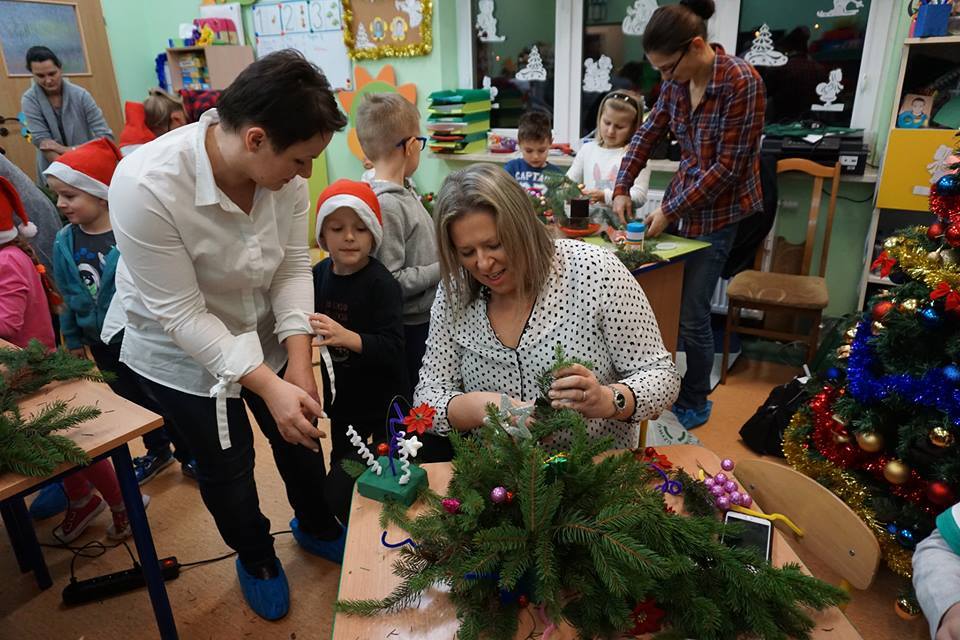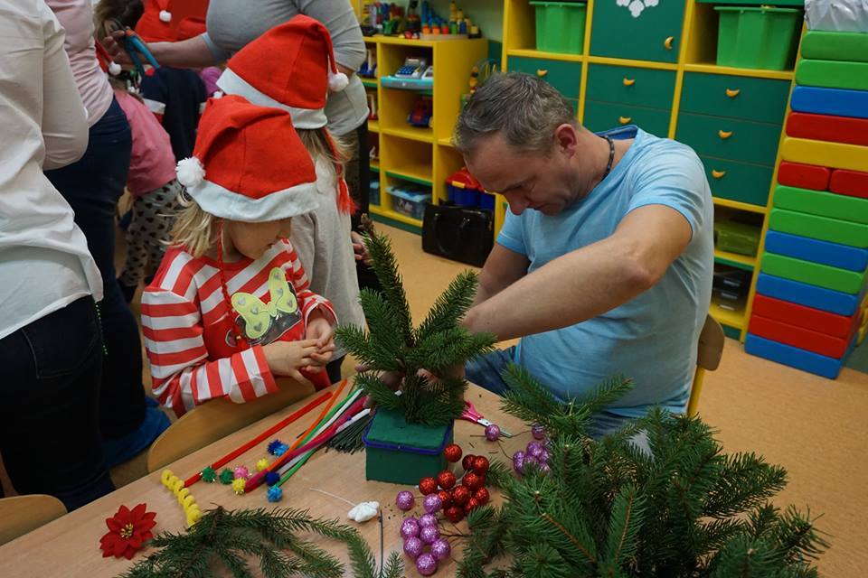 Kto powiedział, że zebranie z rodzicami musi być tylko w formie oficjalnych wiadomości i informacji. W Pszczółkach 7 grudnia tym razem przybrało ono formę świątecznych warsztatów plastyczno – technicznych. Licznie przybyli rodzice przygotowali piękne stoiki Bożonarodzeniowe, które od piątku można zakupić na naszym przedszkolnym kiermaszu. Bardzo cieszymy się z wciąż rosnącego zaangażowania rodziców w nowe pomysły grupowe. Dotychczas na zebrania przybywały w większości same mamy lecz tym razem ku naszemu zaskoczeniu również tatusiowie chętne przybyli i wykonali cudowne i pomysłowe stroiki. Serdecznie Dziękujemy !!!!!!!!!!!!!!