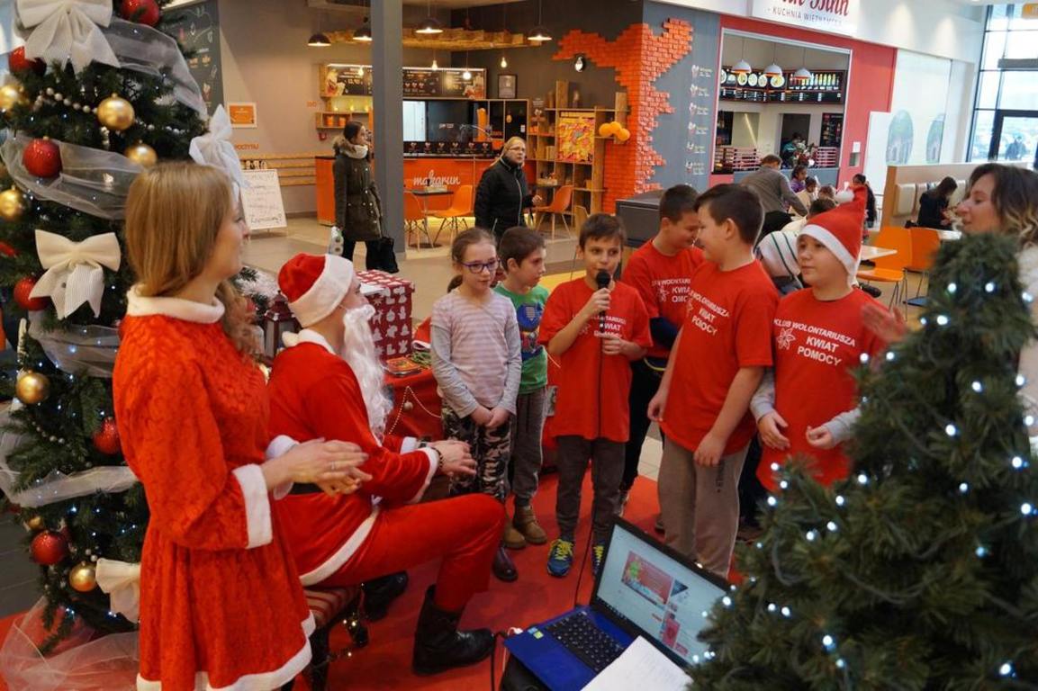 Wolontariusze z Klubu Kwiat Pomocy przy ZSP w Kazuniu Nowym aktywnie działali podczas weekendu 16 i 17.12.2017r. Uczniowie wraz z p. Dorotą Dzimińską oraz Izabelą Jaskólską wystawili swoje stoisko w Centrum handlowym Hit. Dzieci oferowały świąteczne ozdoby, ręcznie wykonane choinki, ozdobne pudełeczka, a także zabawki, gry i puzzle. Przez cały dzień naszym wolontariuszom towarzyszyły śnieżynki, z którymi dzieci śpiewały piosenki, rozwiązywały zagadki i pomagały Świętemu Mikołajowi. Zebrane fundusze przeznaczone zostaną na dofinansowanie wycieczek i imprez szkolnych.