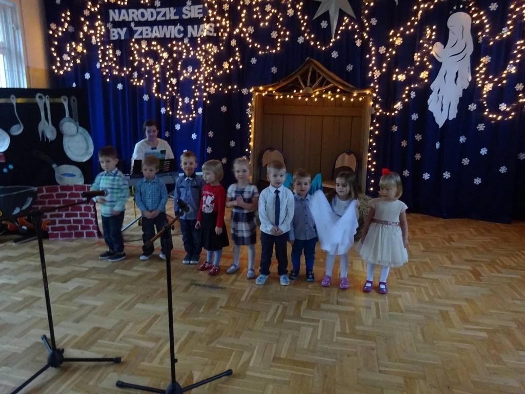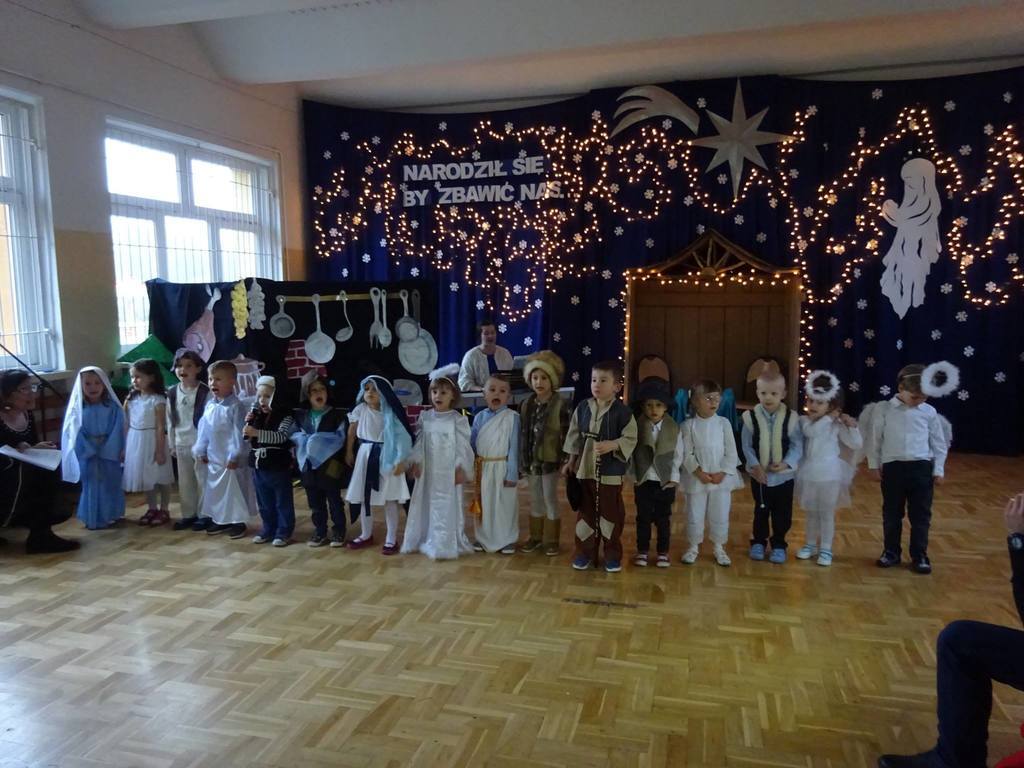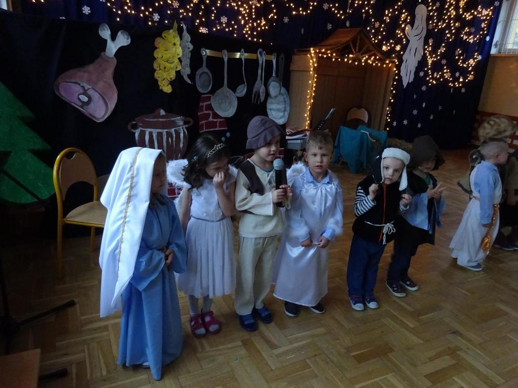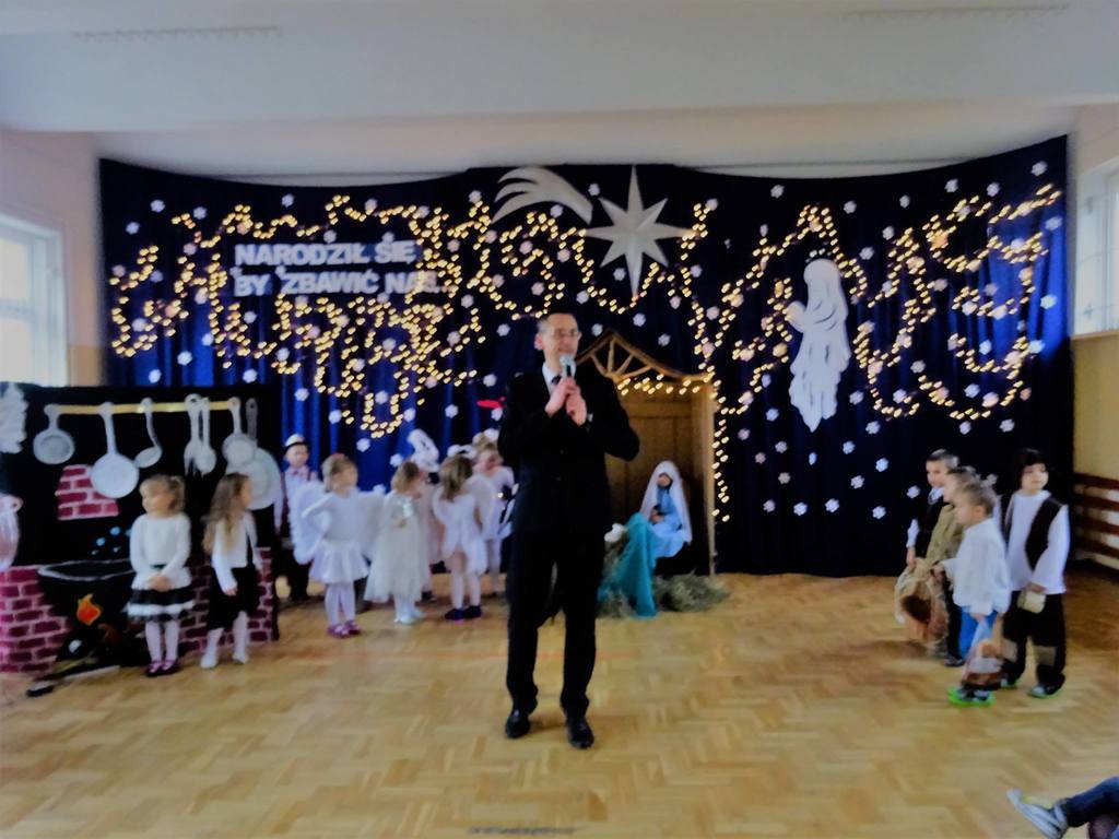 W środę, 20 grudnia w naszym przedszkolu odbyły się Jasełka Bożonarodzeniowe przygotowane przez przedszkolaków. Przedstawienia było wyjątkowe. Dzieci z dużym zaangażowaniem odgrywały swoje role i przeżywały magię Świąt Bożego Narodzenia. Przedszkolaki recytowały wiersze, śpiewały kolędy i pastorałki. Przepiękna scenografia nadała temu wyjątkowemu spotkaniu uroczysty i nastrojowy klimat. Na koniec Pan Dyrektor złożył życzenia bożonarodzeniowe dla wszystkich dzieci i ich rodzin oraz dla pracowników przedszkola. Dalsza część spotkania odbyła się w przedszkolnych salach.