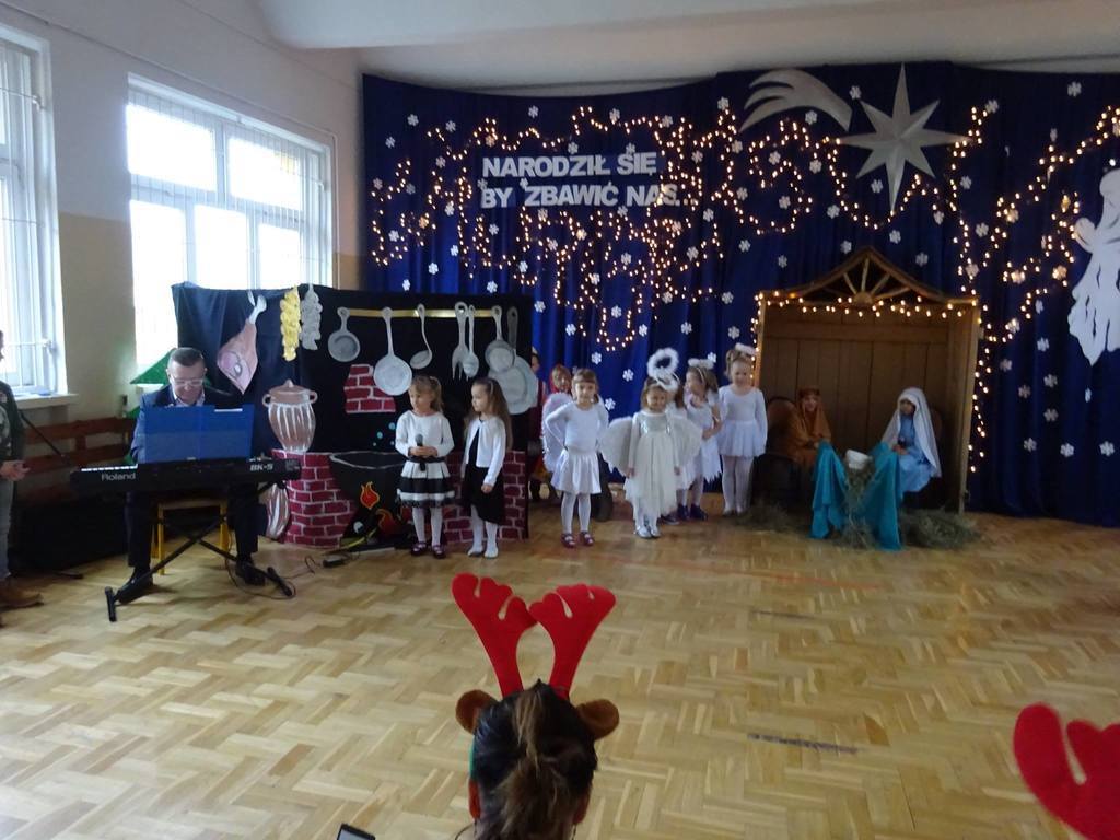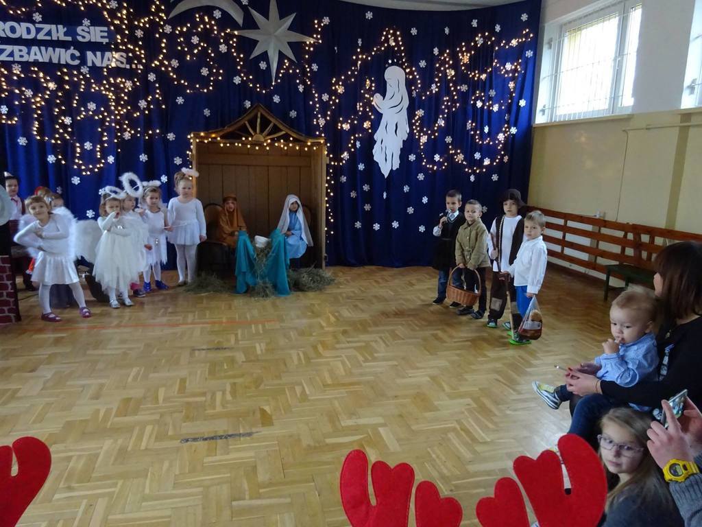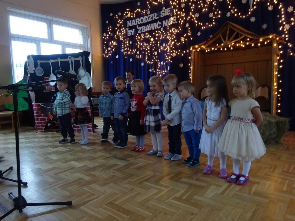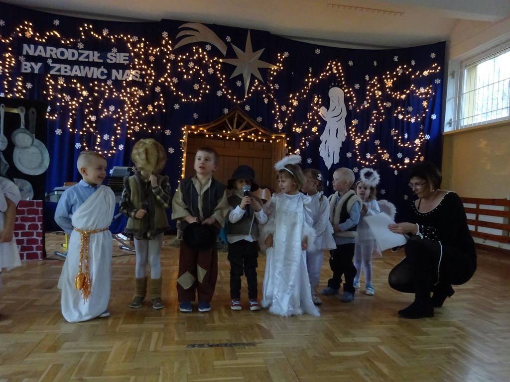 W środę, 20 grudnia w naszym przedszkolu odbyły się Jasełka Bożonarodzeniowe przygotowane przez przedszkolaków. Przedstawienia było wyjątkowe. Dzieci z dużym zaangażowaniem odgrywały swoje role i przeżywały magię Świąt Bożego Narodzenia. Przedszkolaki recytowały wiersze, śpiewały kolędy i pastorałki. Przepiękna scenografia nadała temu wyjątkowemu spotkaniu uroczysty i nastrojowy klimat. Na koniec Pan Dyrektor złożył życzenia bożonarodzeniowe dla wszystkich dzieci i ich rodzin oraz dla pracowników przedszkola. Dalsza część spotkania odbyła się w przedszkolnych salach.