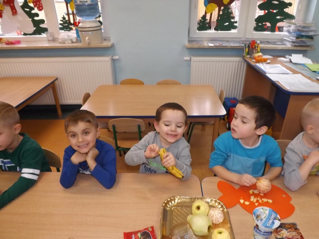 W piątek 9 lutego 2018 dzieci z grupy „Żabki” brały udział w zajęciach „Kuchcikowo”. Tym razem przyrządziły sałatkę owocową.
