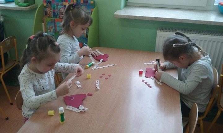 14 lutego 2018 roku był dla pięciolatków z naszego przedszkola prawdziwym, czerwonym dniem miłości i przyjaźni. Pszczółki poznały tradycje związane z Walentynkami skąd pochodzi to święto, kto jest jego patronem oraz wzięły udział w różnych zabawach związanych z walentynkami m.in.: szukały drugiej połówki serca, rozwiązywały zagadki dotyczące bohaterów bajek, bawiły się zrobionymi przez siebie serduszkowymi przyjacielami oraz tańczyły balonowo – walentynkowe tańce. Nie zabrakło oczywiście sercowych kolorowanek, spontanicznych emocji oraz pozytywnych uczuć. Na koniec tego czerwonego dnia każde dziecko wykonało swoją walentynkę dla rodziców oraz wybrało w jakim języku ma być na niej napisane „Kocham Cię dla rodziców”.