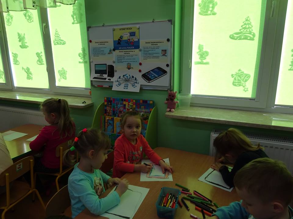 Ogólnoświatowy Dzień Bezpiecznego Internetu w naszym przedszkolu w Pszczółkach obchodziliśmy 20 lutego. W ramach wspomnianych obchodów dzieci zostały zapoznane z podstawowymi zasadami bezpiecznego korzystania z Internetu poprzez bajki z serii „Sieciaki.pl.”oraz „Owce w sieci” czy „3.2.1 Internet”, które obejrzały z wielkim zainteresowaniem podczas ich pierwszej poważnej 45 minutowej lekcji. Filmy poprzedzone zostały pogadanką i prezentacją multimedialną nauczycielki na temat Internetu z naciskiem na bezpieczeństwo w sieci. Dzieci wykazały się dużą zeszłoroczną wiedzą o Internecie i zasadach korzystania z niego. Doskonale poradziły sobie w konkursie quizowym z pytaniami dotyczącymi obejrzanych bajek. Po powrocie do sali utworzyły sieć internetową i stworzyły własne plakaty z zasadą bezpiecznego korzystania z internetu, tabletu czy komputera. Wysłuchały również opowiadania a Patryku i Misiu Bruno o bezpiecznym korzystaniu z urządzeń podłączonych do internetu. Dzień Bezpiecznego Internetu to kolejna z akcji przeprowadzanych w naszym przedszkolu mająca na celu uświadomienie dzieciom niebezpieczeństw, jakie czekają na nie w dzisiejszych czasach.