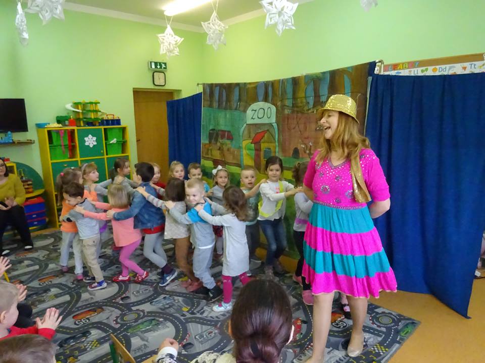 8 marca nasze przedszkole po raz kolejny odwiedzili aktorzy z teatru ART.-RE z Krakowa z przedstawieniem pt. „Pchła Krętaczka”. Wesołe, pełne humoru i zwrotów akcji przedstawienie z morałem, będącym adaptacją wiersza Jana Brzechwy „Pchła Szachrajka” rozbawiło naszych małych wychowanków. Główną bohaterką była mała pchełka, która nieustannie kłamała i psociła wszystkim dookoła - próbowała przekonać Kotka, że jest groźna, opowiadając mu niestworzone rzeczy o lwach, panterach i lampartach, które niby hoduje, Słoniowi obiecała małżeństwo, nie zamierzając dotrzymać słowa, oszukała Świnkę - kelnera w cukierni nie płacąc za zjedzone słodycze. Jej wybryki ukrócił wreszcie sędzia – Piesek, który uświadomił niesfornej pchełce, że ta źle postępuje, nakładając na nią też zasłużoną karę.
