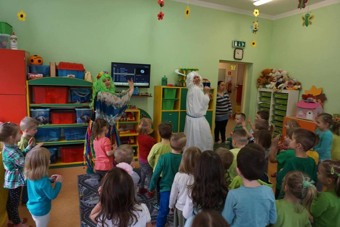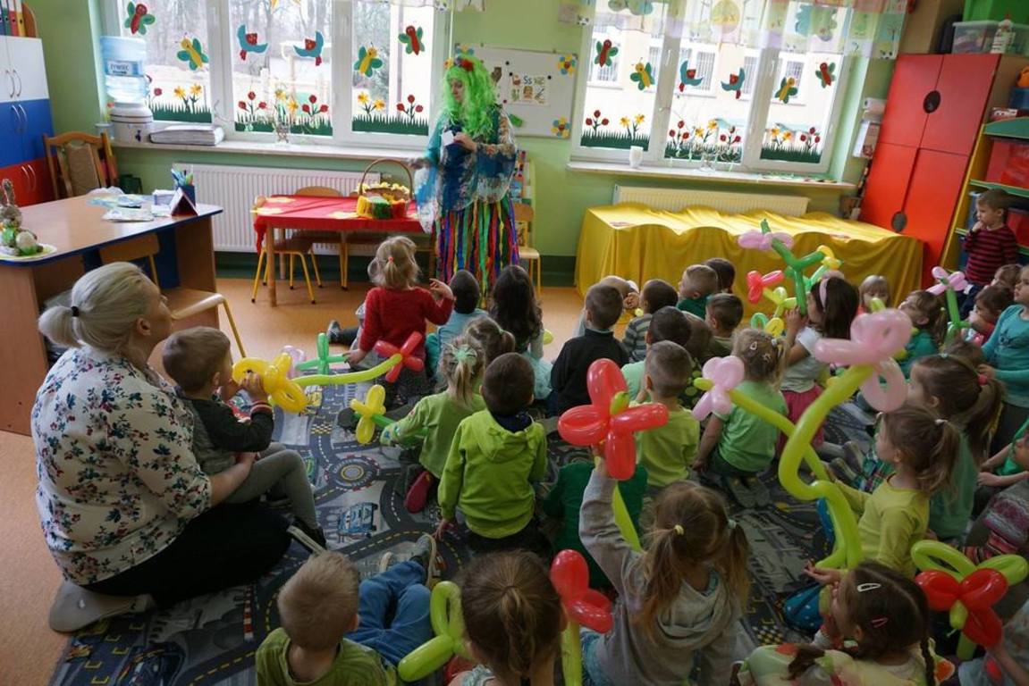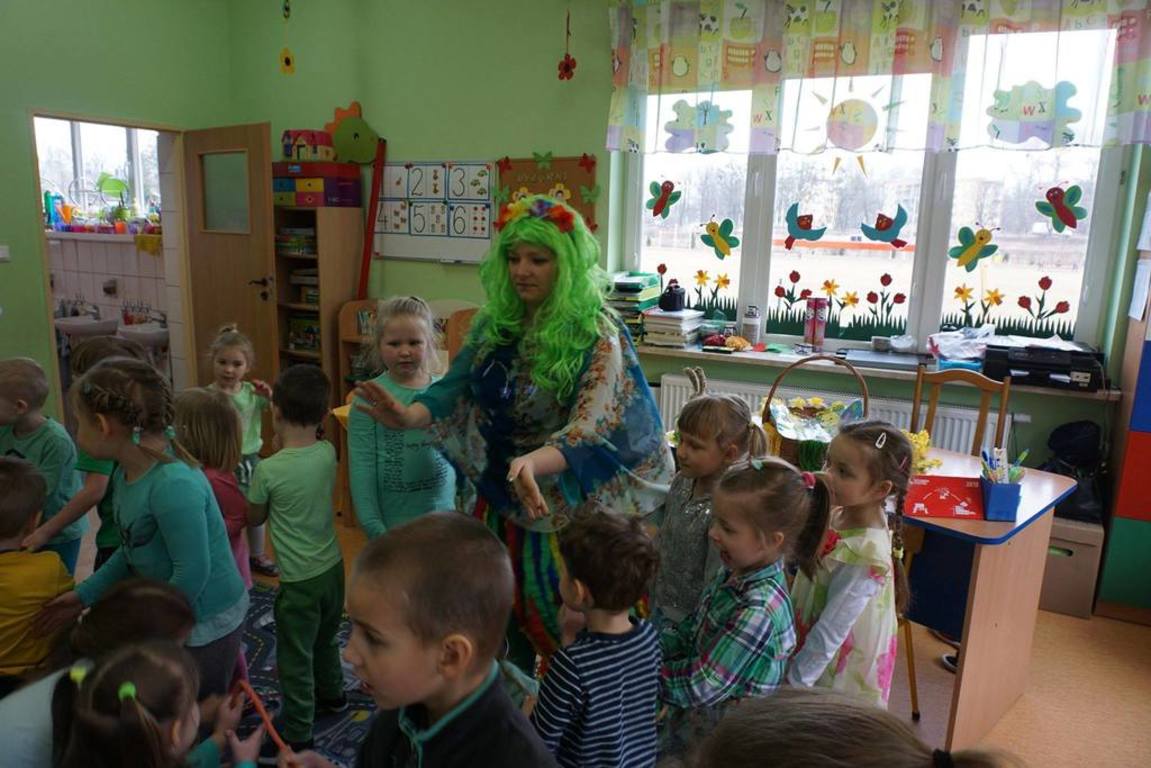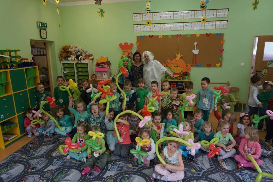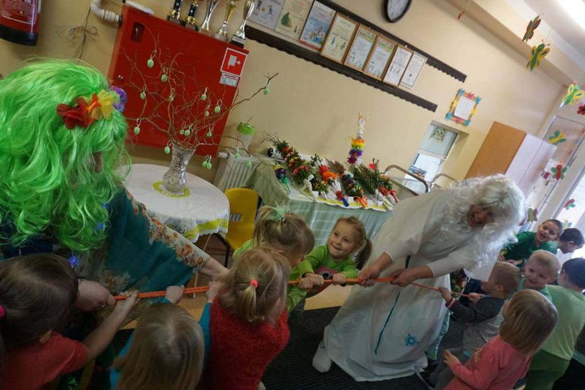 Tradycyjnie jak co roku w naszym przedszkolu obchodzimy Pierwszy Dzień Wiosny. Aby podkreślić charakter tego dnia, Przedszkolaki przyszły ubrane na zielono. Uroczystości powitania Wiosny rozpoczęły się od pożegnania pani zimy. Następnie przedszkolaki wraz z panią zima wyruszyły na poszukiwania pani wiosny, która to odczytała list od Bociana oraz przygotowała konkursy, gry i zabawy związane z tematyką pór roku. Była wiosenna gimnastyka, przeciąganie liny, wiosenny bal, zagadki oraz wiosenny korowód po całym przedszkolu z kolorowymi kwiatami. Każda z grup w swoich salach wykonała prace plastyczne związane z rozpoczynającą się porą roku oraz zasadziła cebulki. Na koniec każdy przedszkolak otrzymał medal za wspólną wiosenną zabawę.